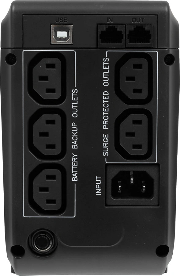 защита коаксиальных линий (ТВ/кабельные модемы), защита сети (порт RJ-45), защита телефона (порт RJ-11), от глубокого разряда батареи, от короткого замыкания, от перегрузки