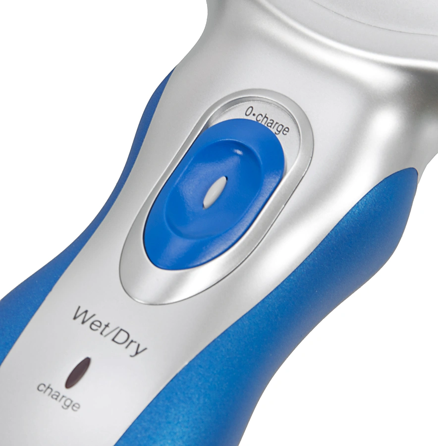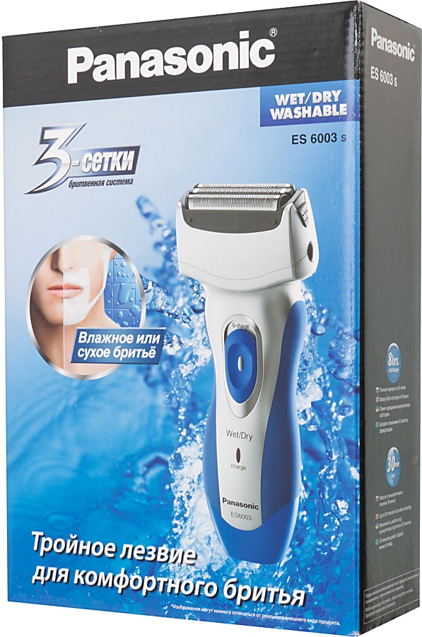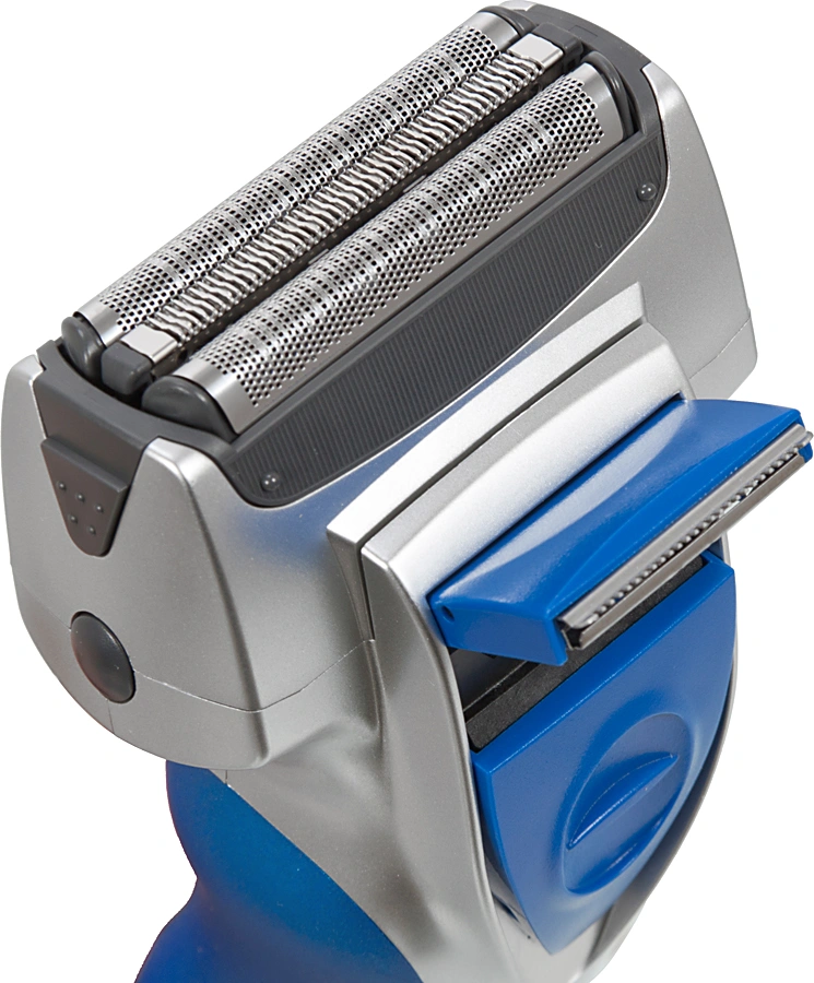 Электробритва с тройной бритвенной системой для сухого и влажного бритья. Внутренние ножи заточены под углом 30 градусов. Нескользящая ручка со вставками из эластомера. Индикация зарядки. Адаптация к любому напряжению. Встроенный выдвижной триммер. Мощный двигатель в 10000 оборотов в минуту.