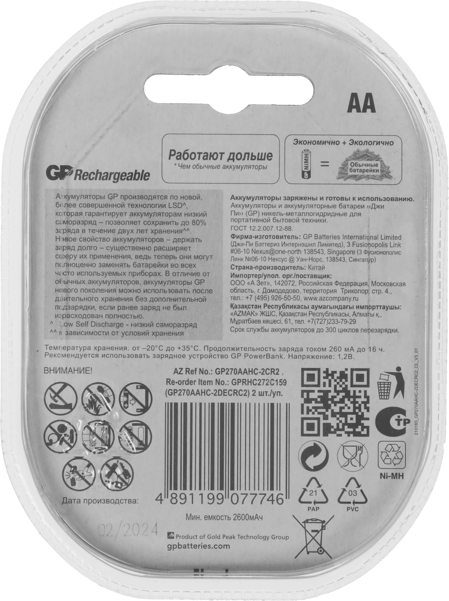 Аккумуляторы AA никель-металлгидридные. Емкостью 2700 мАч.