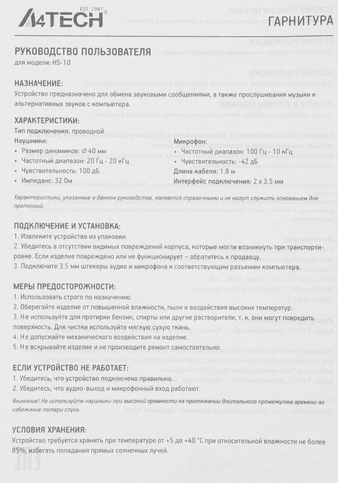 черный/белый 2м накладные оголовье (HS-10/3.5MM PL...