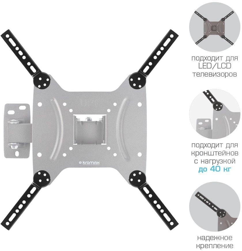 благодаря этому Вам не нужно заново собирать кронштейн или сверлить отверстия в стене, просто прикрутите адаптер к старому кронштейну и все!
