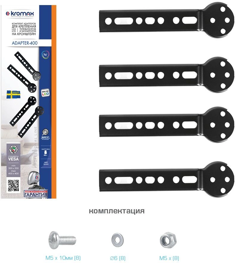 Конструкция адаптера легка и проста в установке: закрепите каждую из пластин на имеющийся у Вас кронштейн