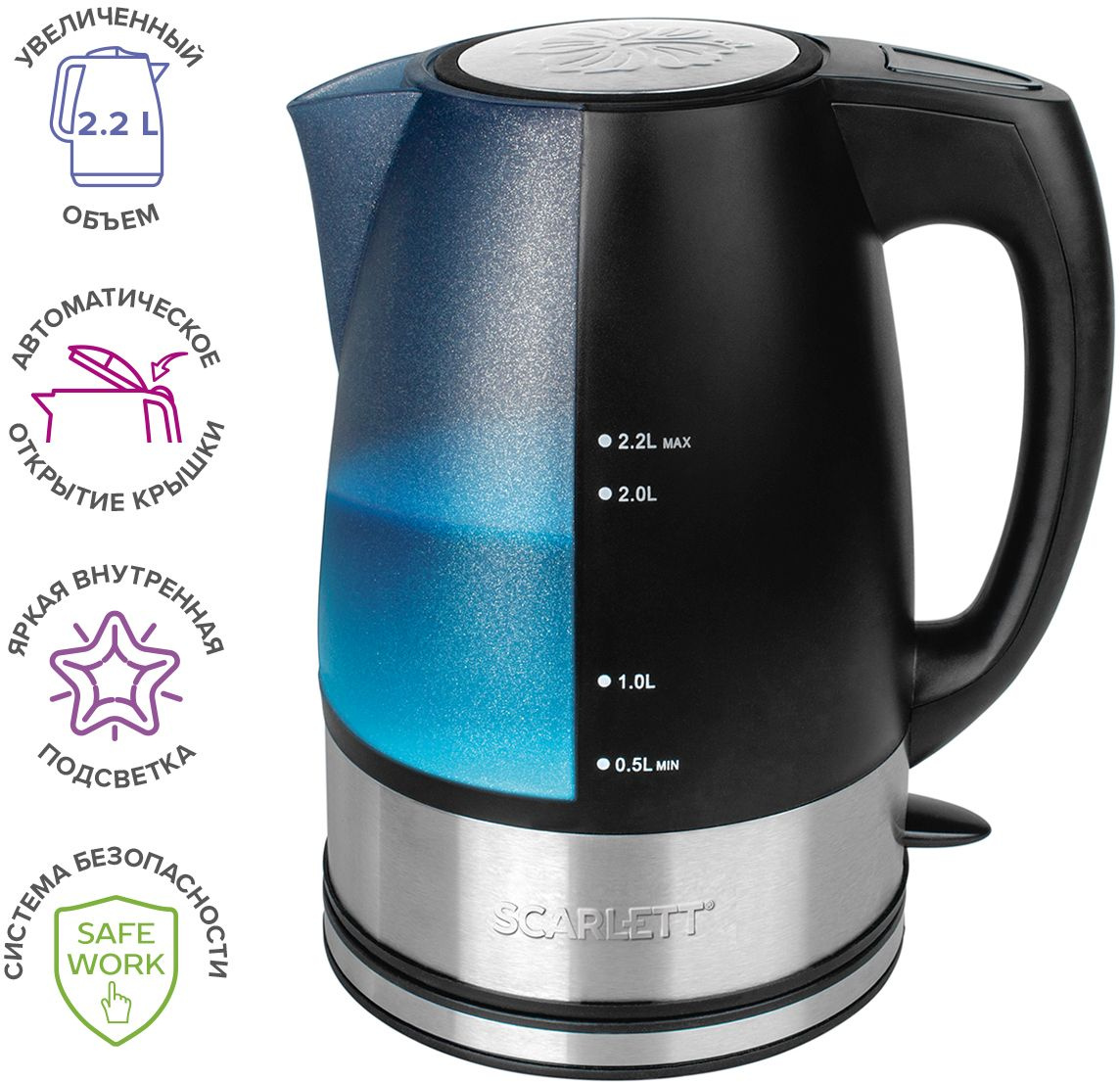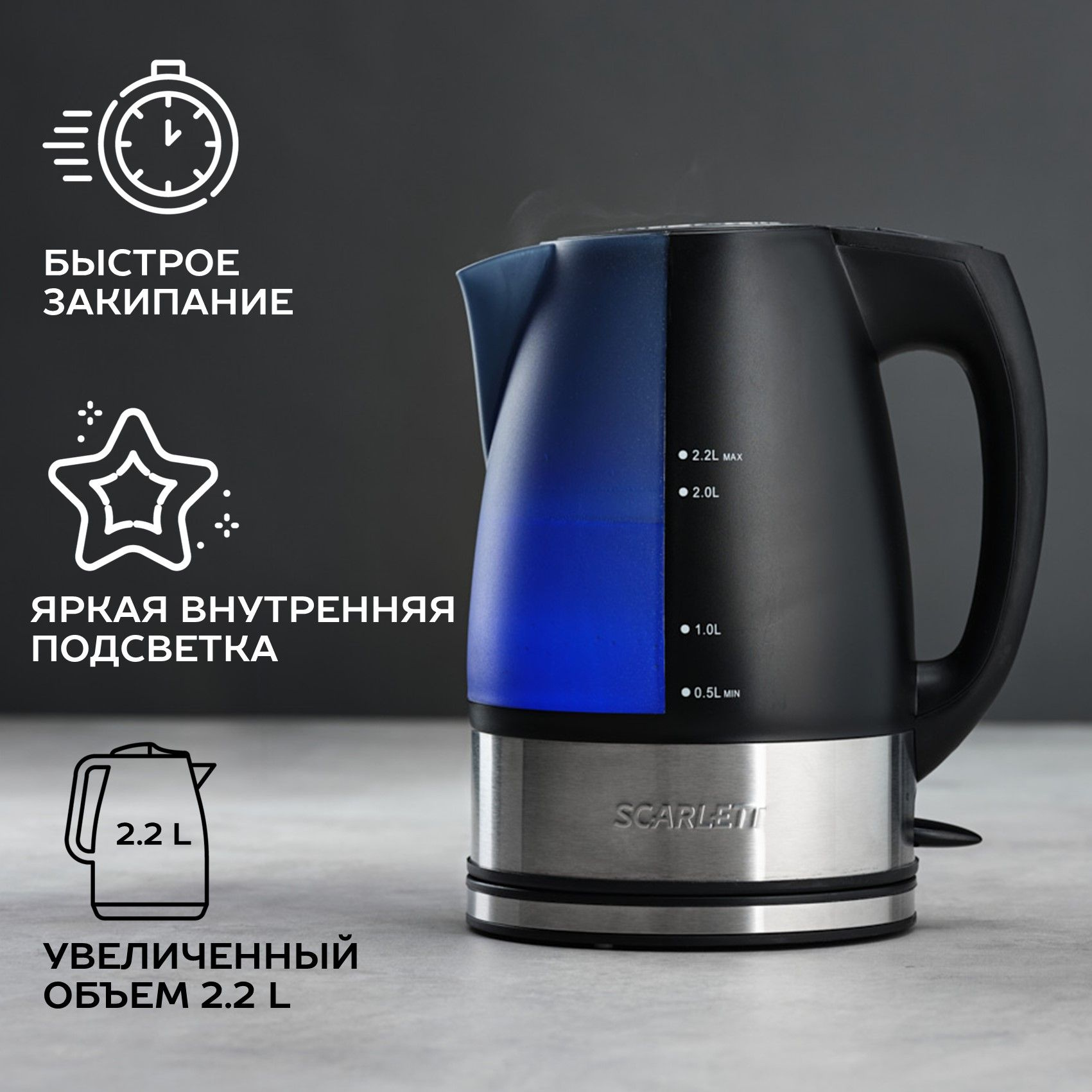 С уникальным объёмом 2,2 л. Большой объем станет идеальным решением для больших семей и офиса. Прибор выполнен в стильном приятном дизайне. Наличие подсветки в сочетании с корпусом из полупрозрачного пластика делает контроль уровня воды максимально комфортным