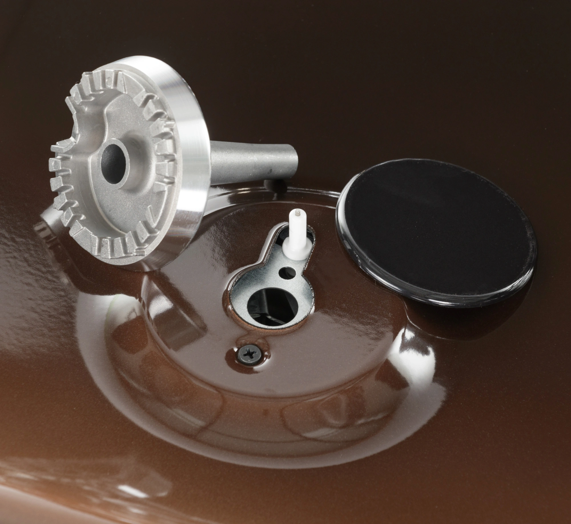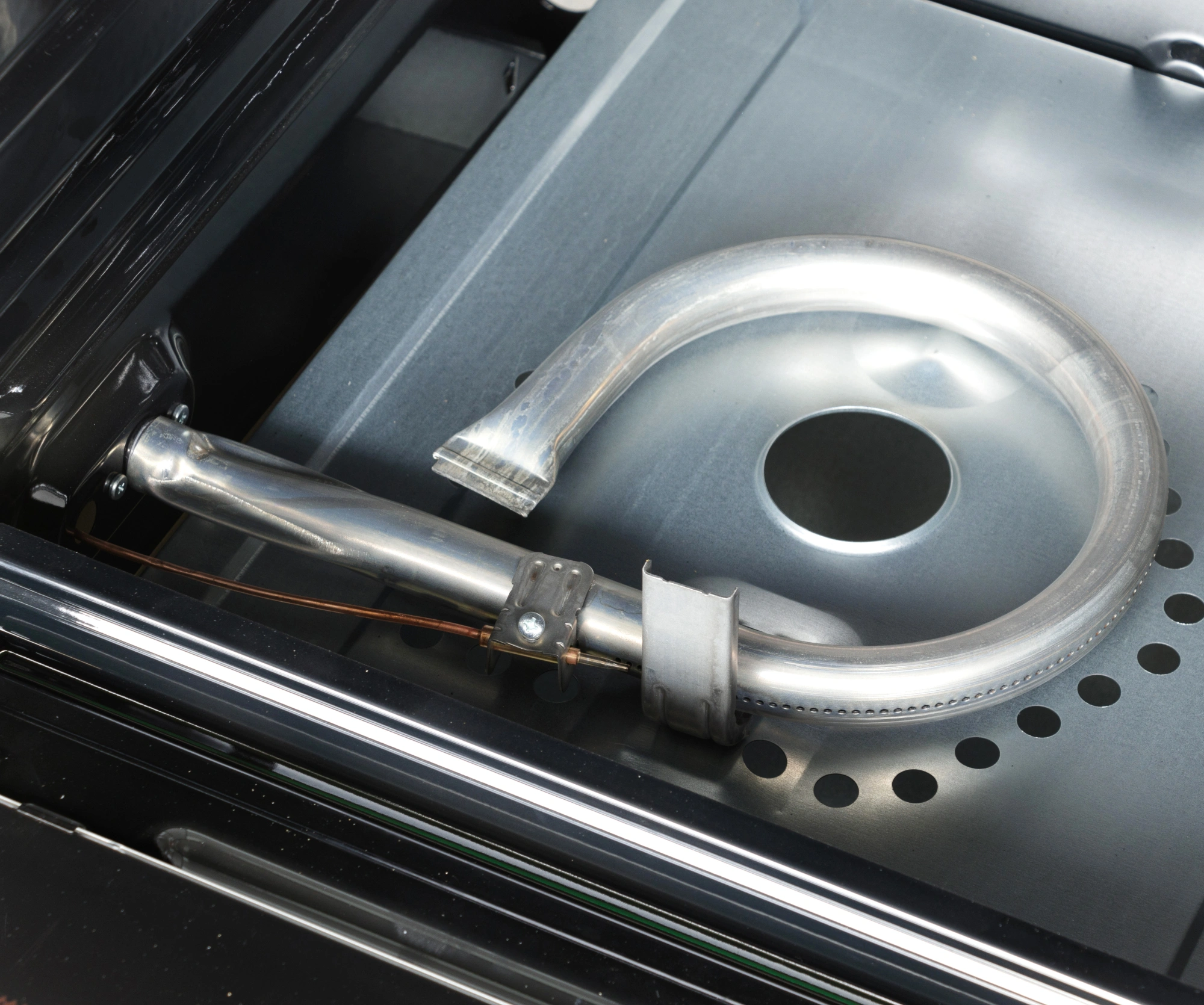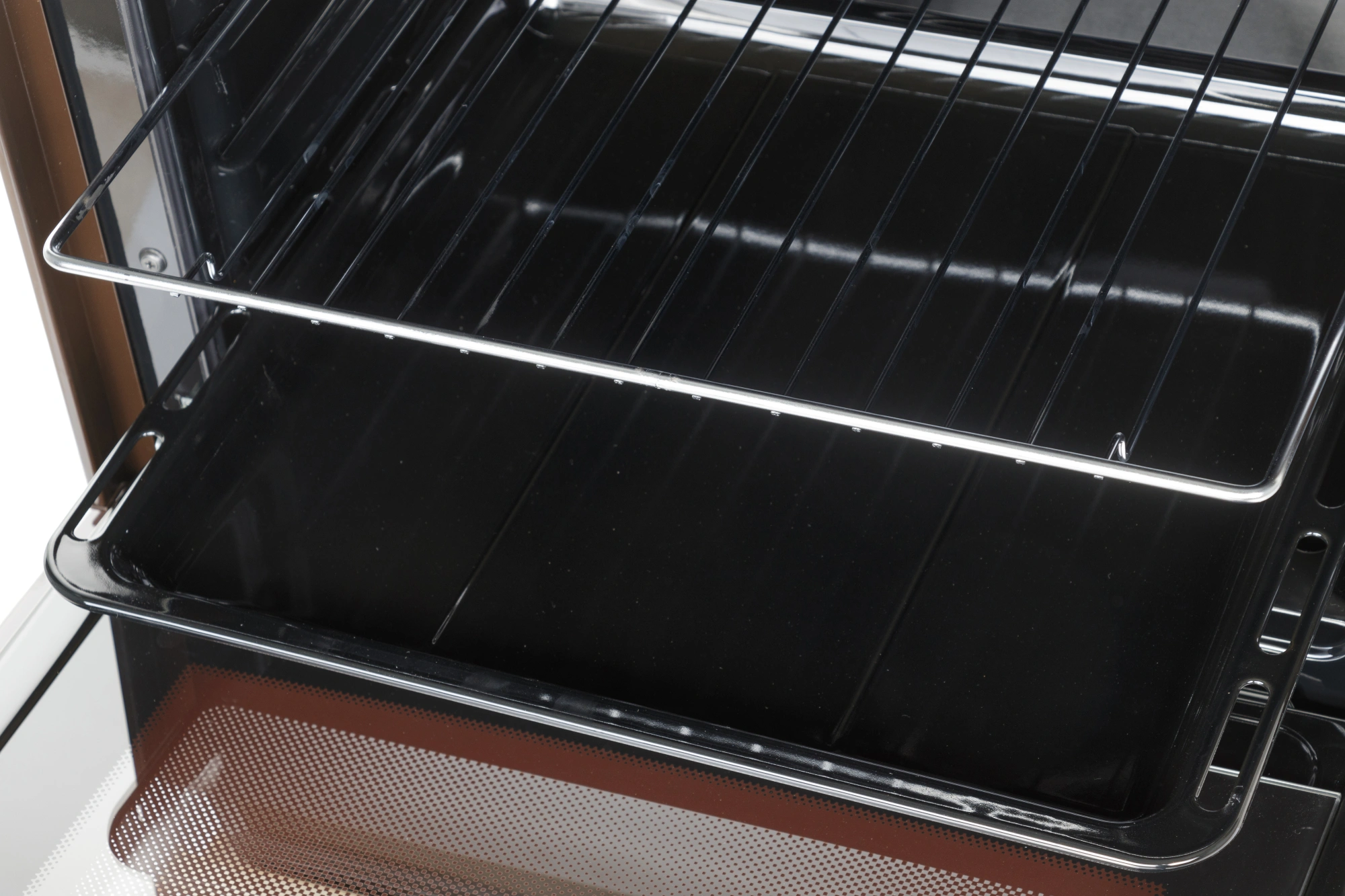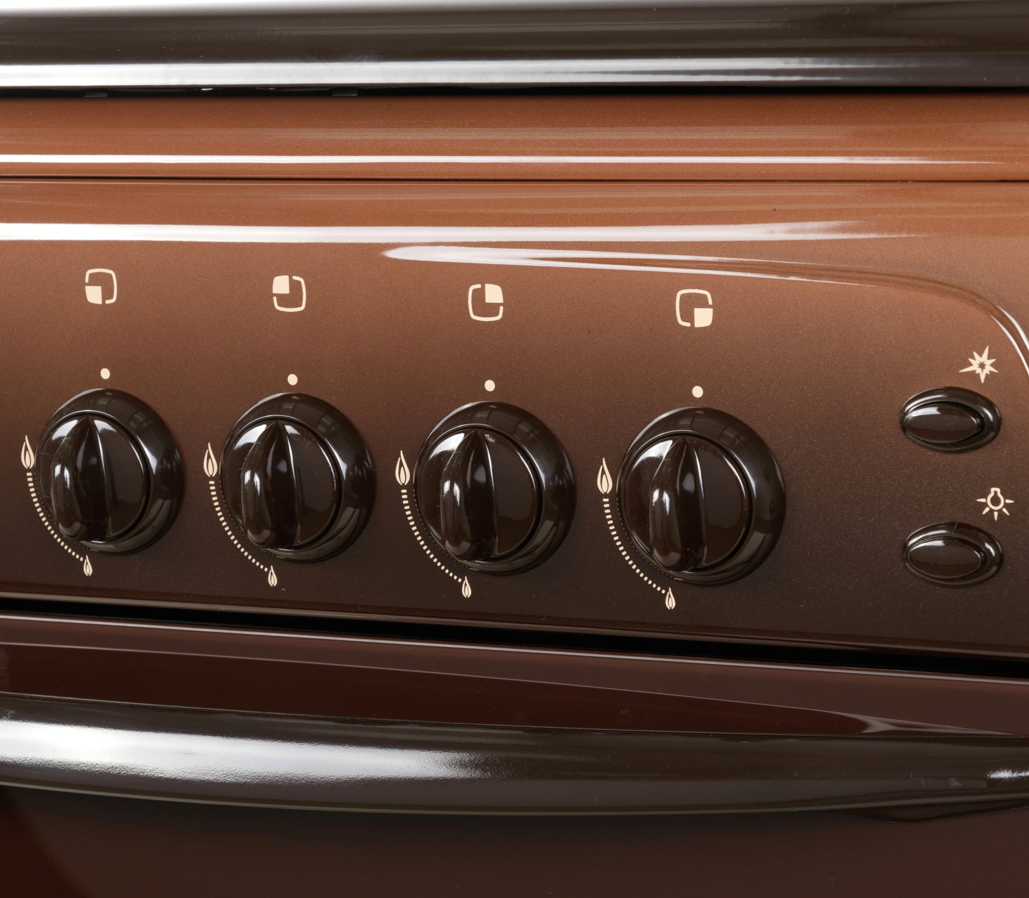 Термоуказатель духовки. Штампованные направляющие. Электророзжиг горелок, кнопка розжига на панели.