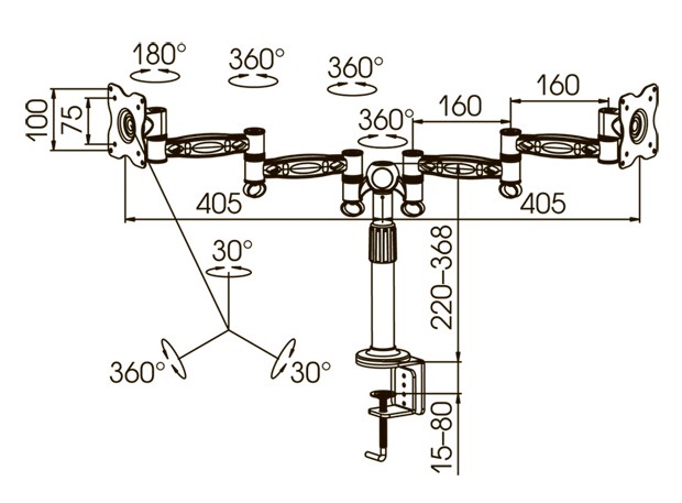 серый 15"-32" макс.12кг настольный поворот и накло...