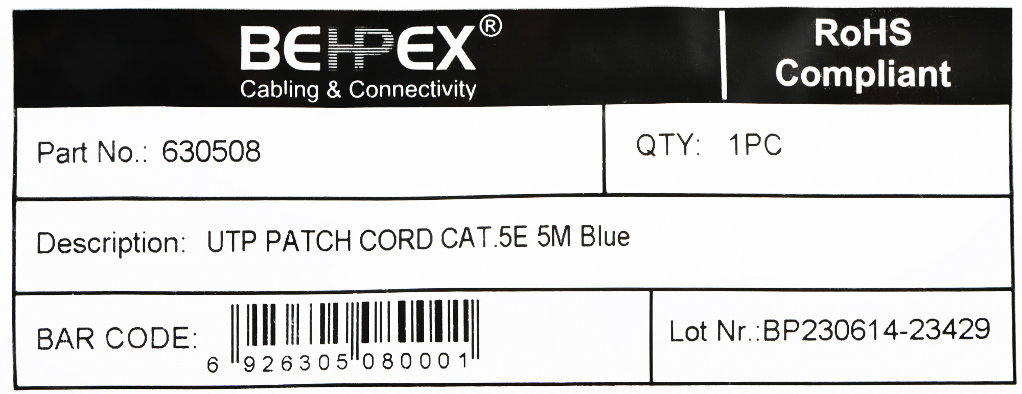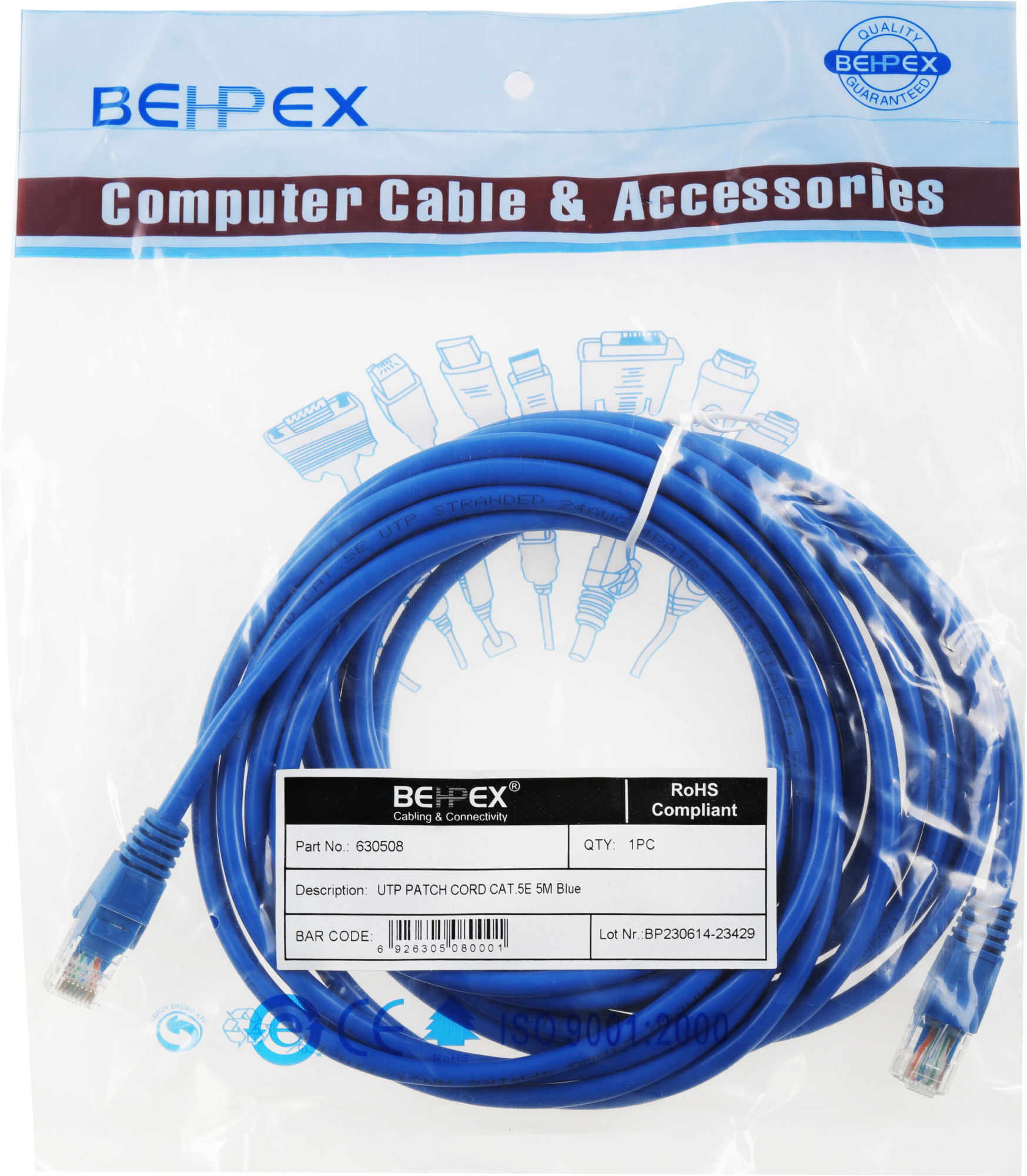Патч-корд cat5E molded 5м синий RJ-45 (m)-RJ-45 (m)