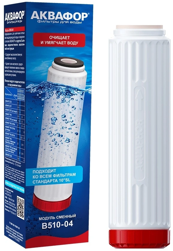 Регенерируемый сменный модуль для умягчения воды, содержит только ионообменные материалы. Используется в стационарных системах очистки питьевой воды АКВАФОР Трио и ОСМО, а также в выпускавшихся ранее АКВАФОР Дуэт. Подходит к системам других марок, использующих 10-ти дюймовый стандарт корпуса.