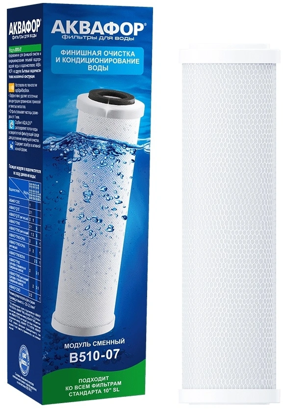 Универсальный сменный модуль для финишной очистки воды. Используется в стационарных системах очистки питьевой воды АКВАФОР Трио, а также в выпускавшихся ранее АКВАФОР Дуэт и Соло. Кроме того подходит к системам других марок, использующих 10-ти дюймовый стандарт корпуса.
