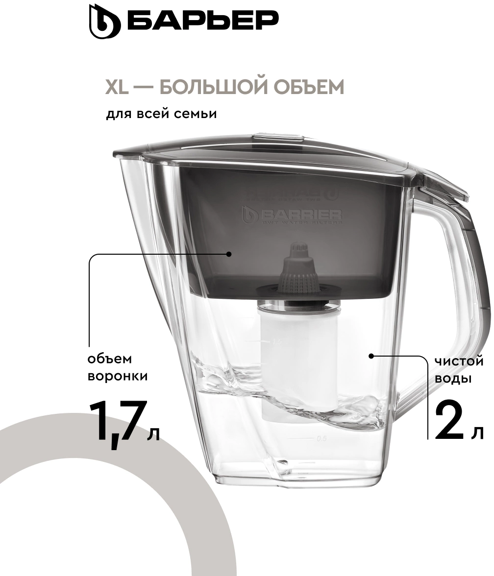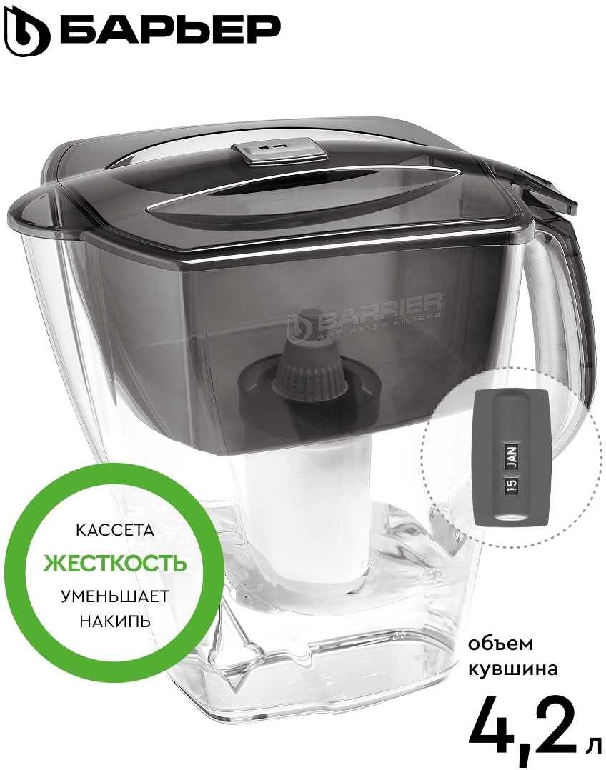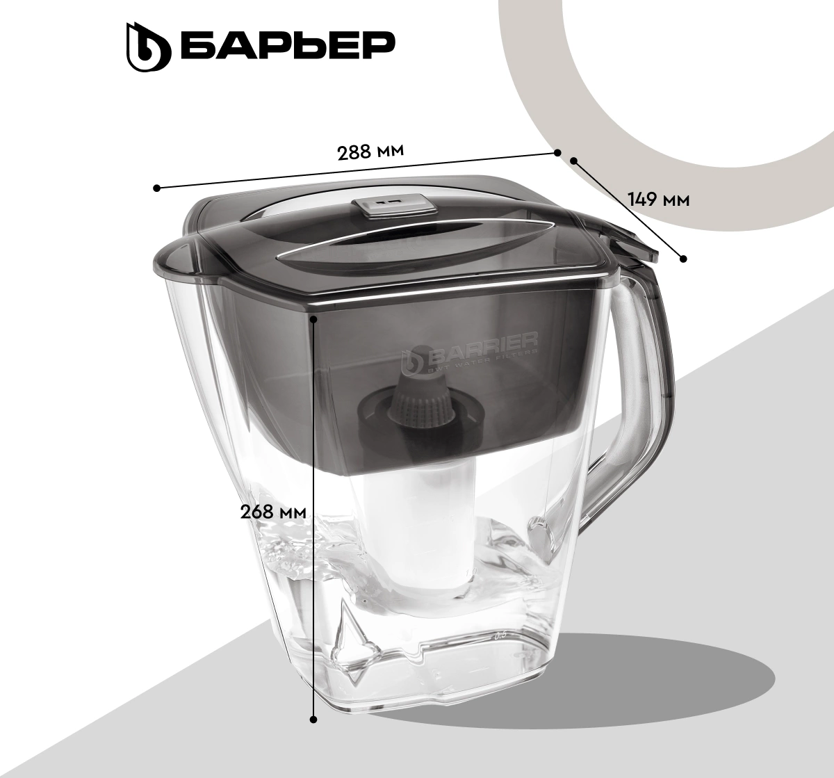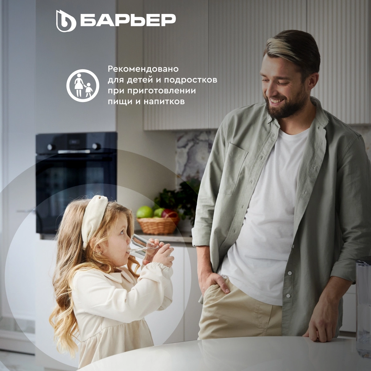 Уникальная конструкция воронки, препятствующая попаданию неочищенной воды и пыли в отфильтрованную воду, кувшин изготовлен из высококачественного пластика BASF, допущенного для контакта с питьевой водой.