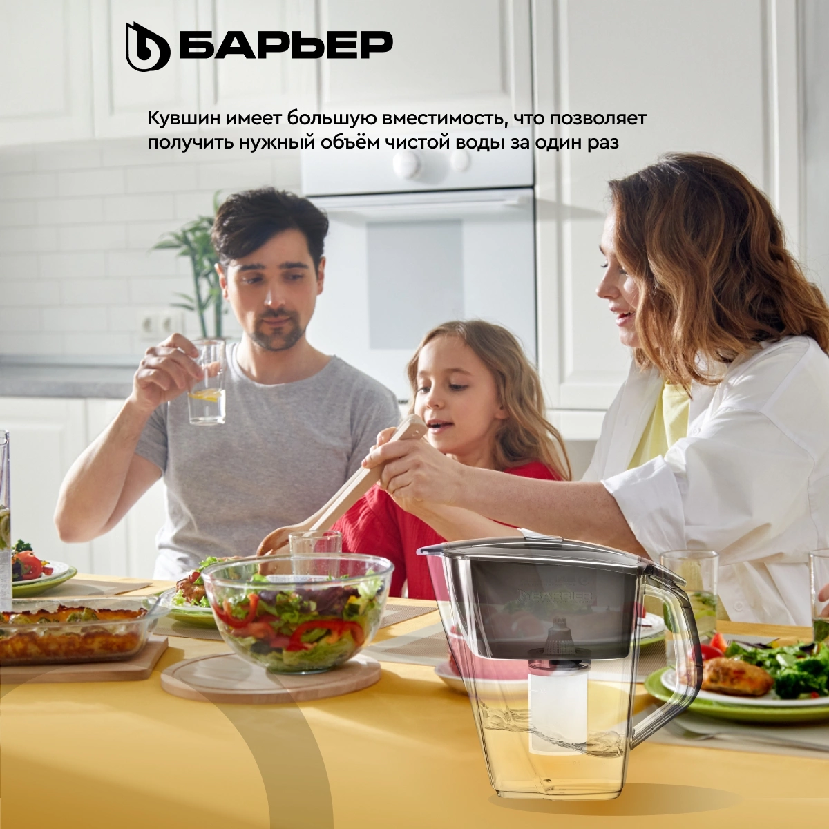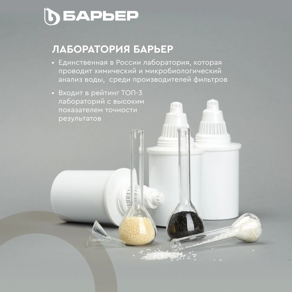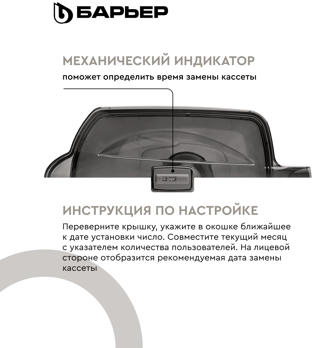 Уникальная конструкция воронки, препятствующая попаданию неочищенной воды и пыли в отфильтрованную воду, кувшин изготовлен из высококачественного пластика BASF, допущенного для контакта с питьевой водой.