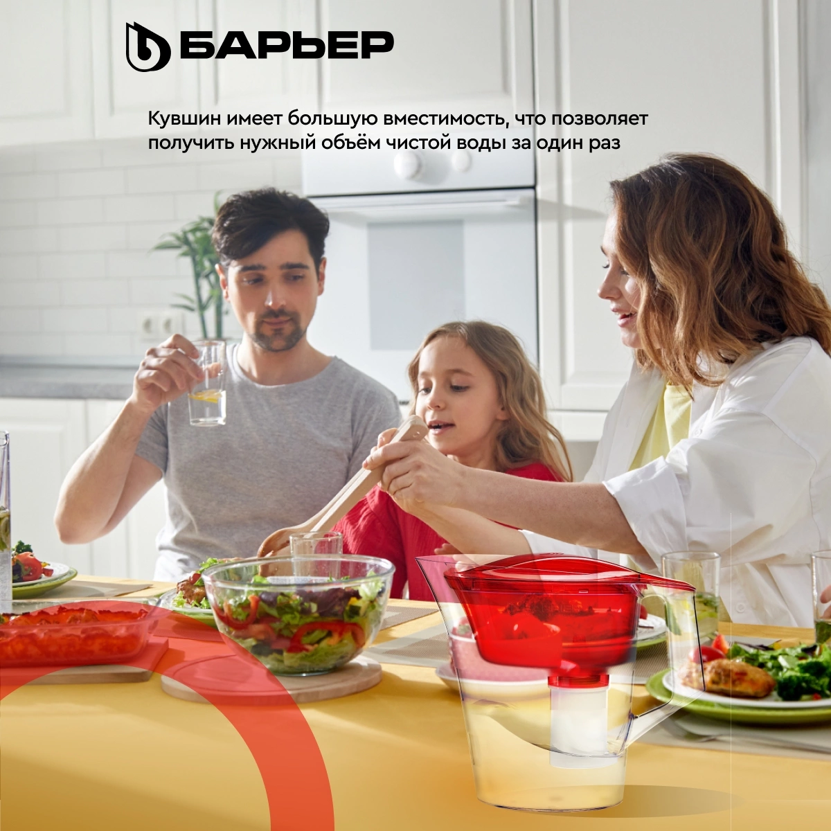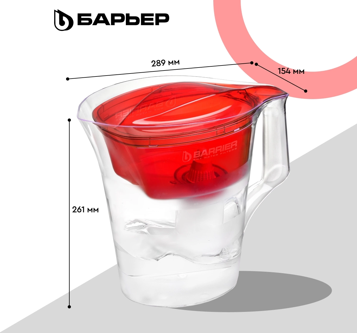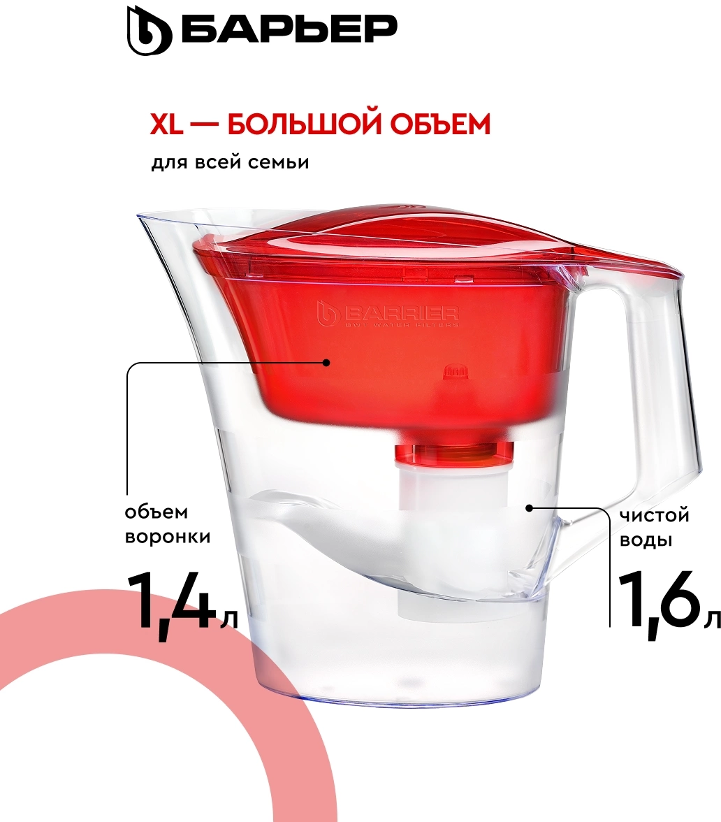 Кувшин декорирован матовыми горизонтальными полосами, которые подчеркивают форму кувшина. Кувшин изготовлен из высококачественного пластика BASF, допущенного для контакта с питьевой водой.