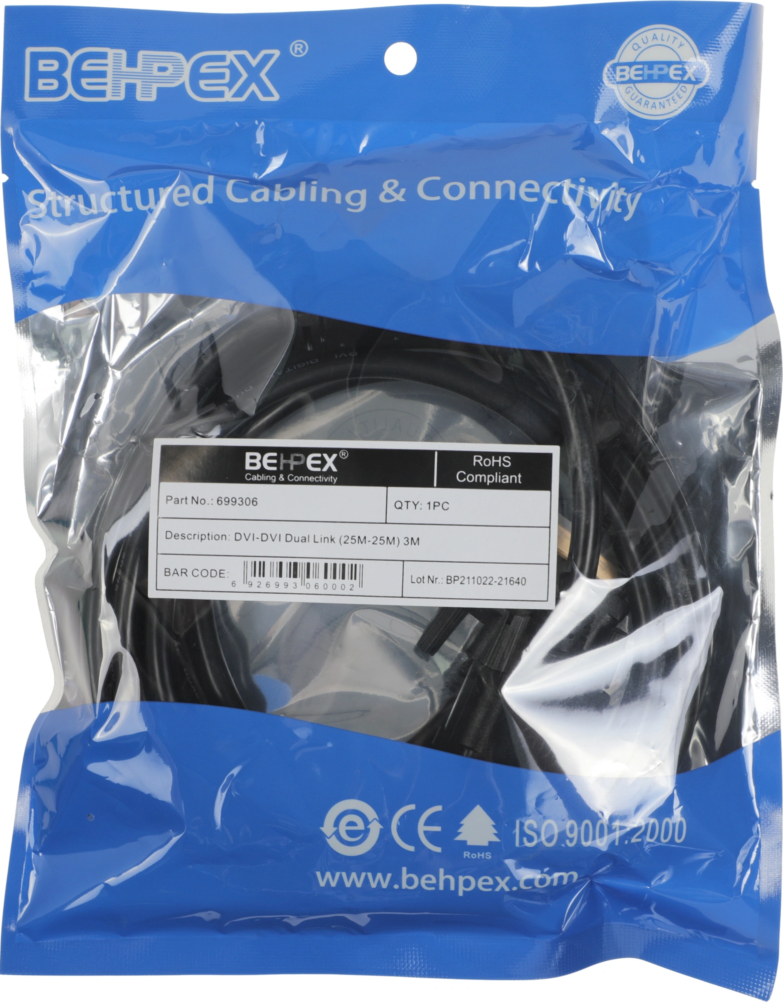 Кабель DVI-D (m) DVI-D (m) 3м феррит.кольца черный