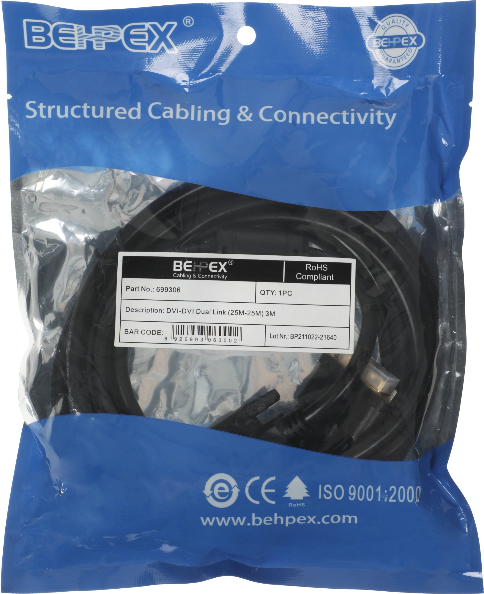 Кабель DVI-D (m) DVI-D (m) 3м феррит.кольца черный