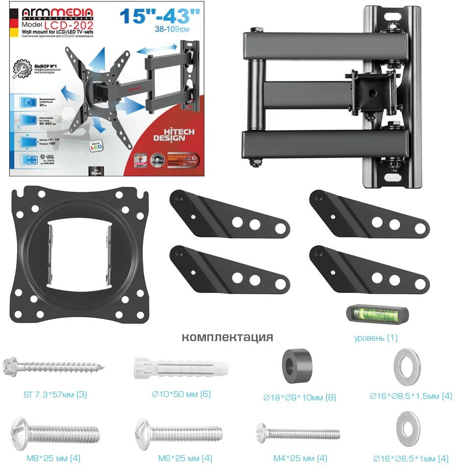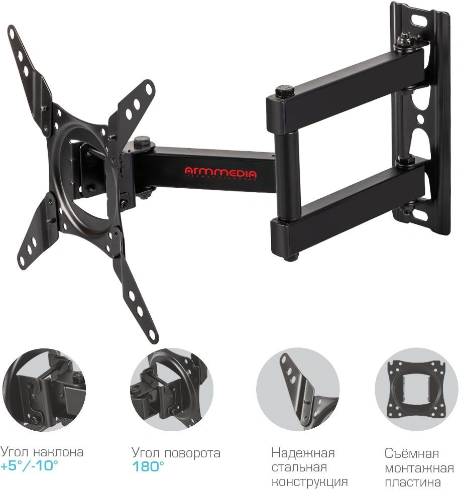 черный 15"-43" макс.20кг настенный поворот и накло...