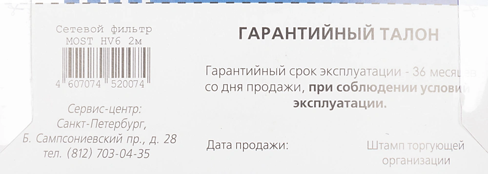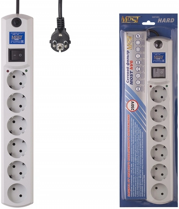 2м (6 розеток) белый (коробка)