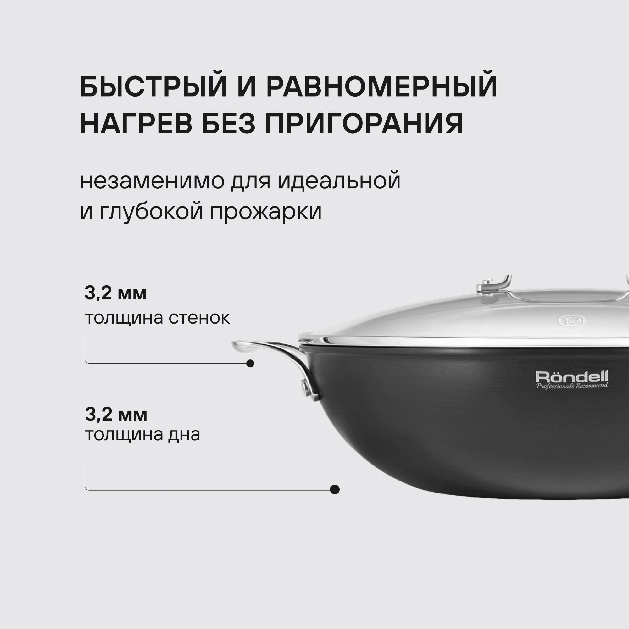 Жарка в сковороде вок — один из самых популярных способов тепловой обработки продуктов в традиционной азиатской кухне. Но такая посуда способна и на большее! Проверьте в деле сковороды вок из коллекции Wok от Rondell и удивитесь универсальности их применения.