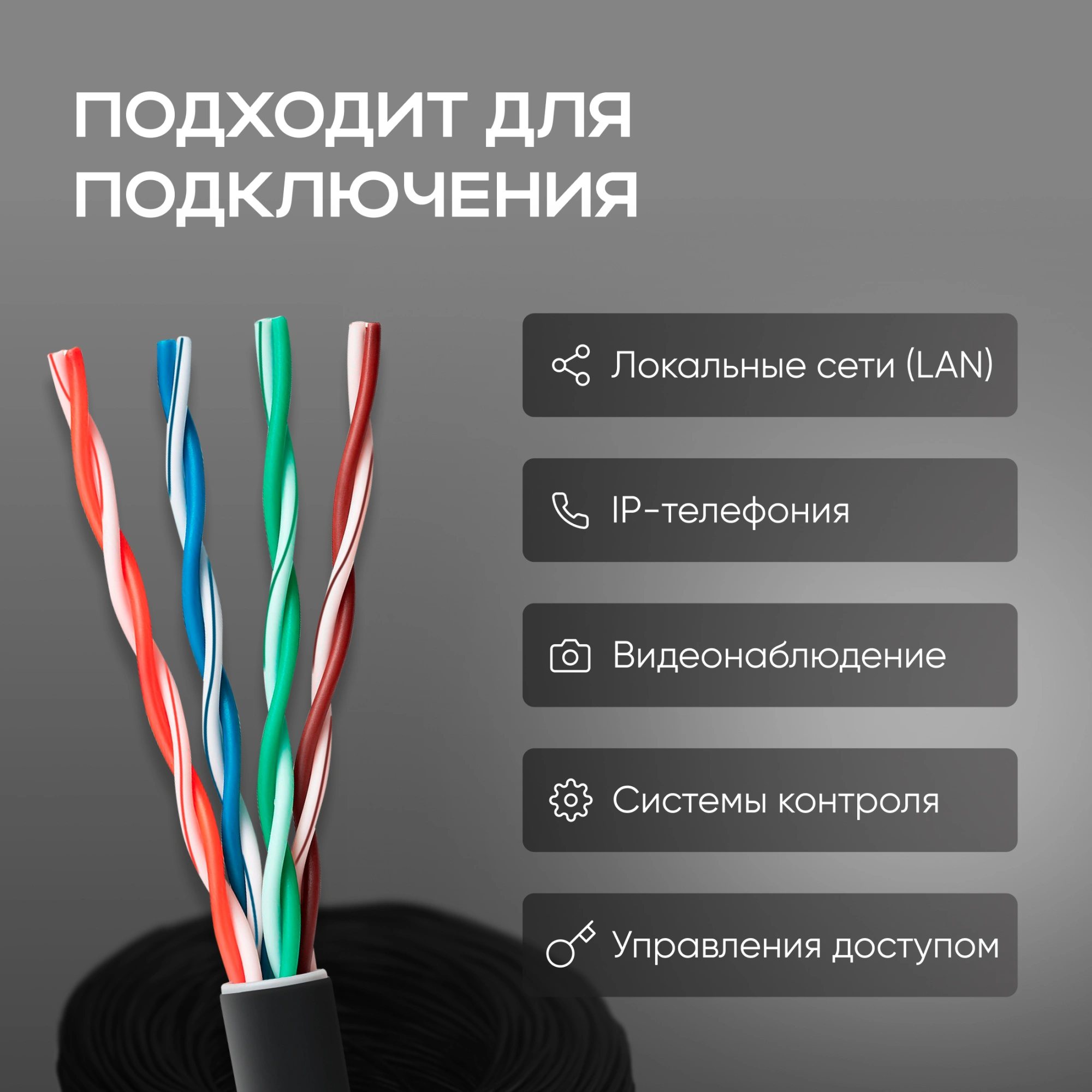 Кабель сетевой FTP 4 пары cat.5E solid 0.51мм CCA 305м черный outdoor