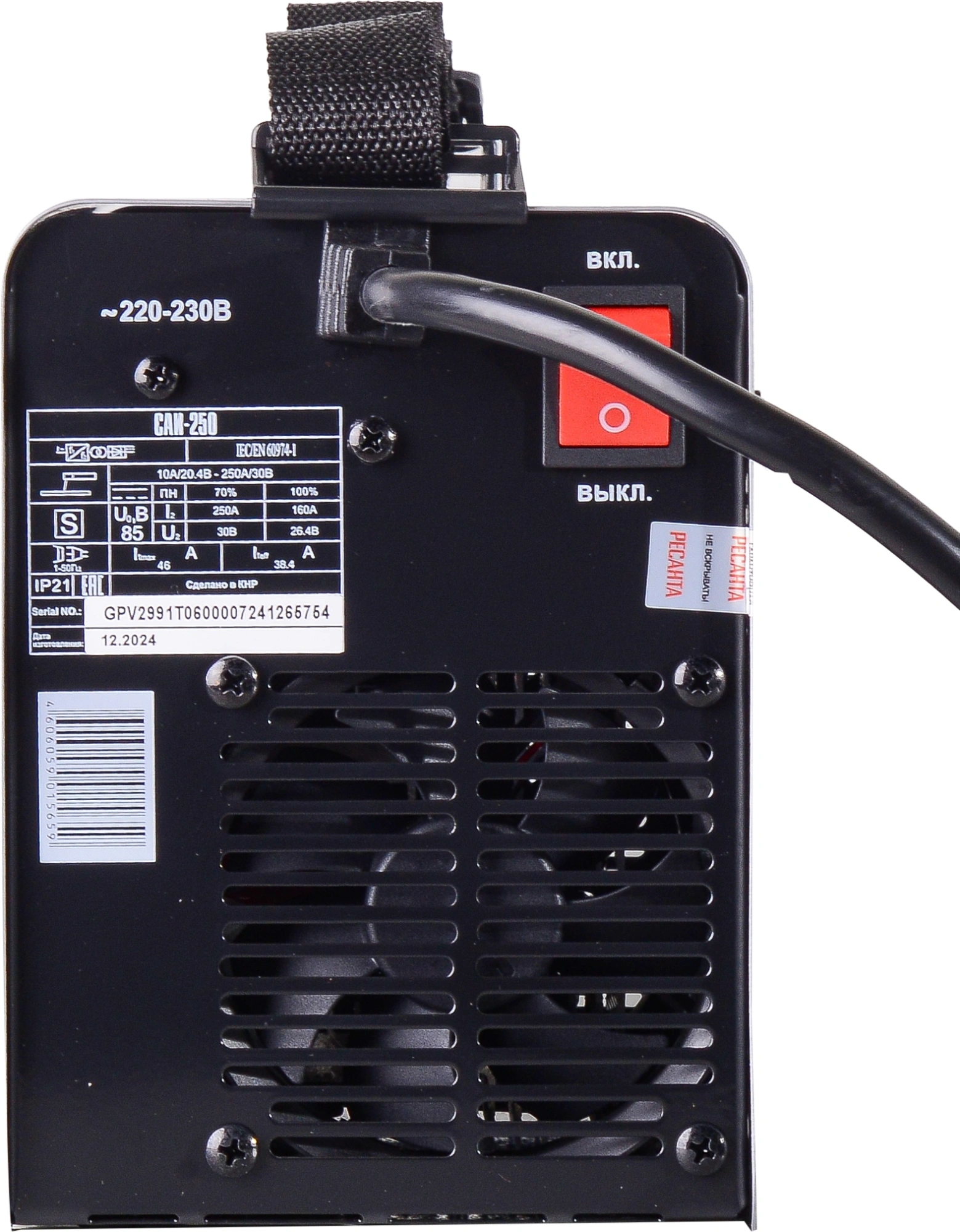Инвертор; кабель с электрододержателем; кабель с клеммой заземления; паспорт; упаковка