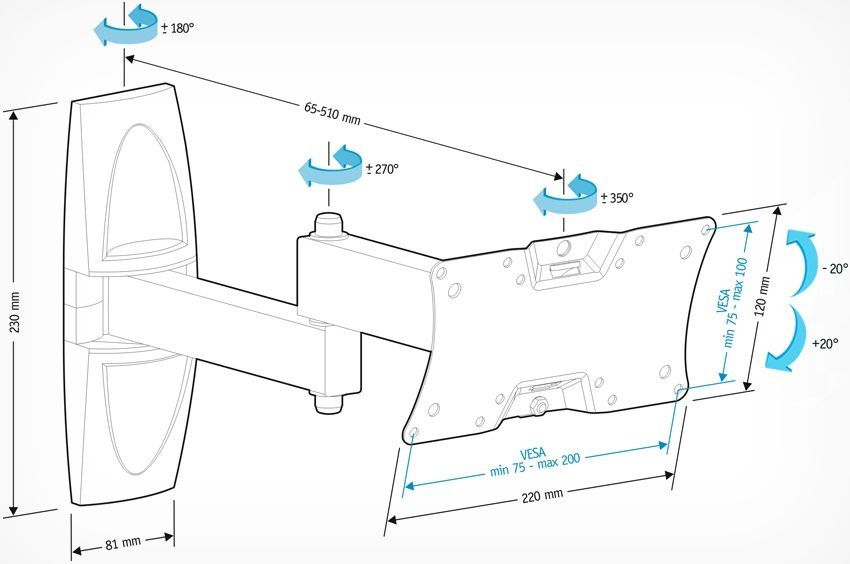 черный 15"-38" макс.30кг настенный поворот и накло...