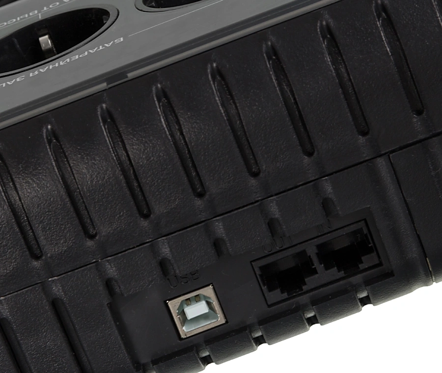 защита сети (порт RJ-45), защита телефона (порт RJ-11), от глубокого разряда батареи, от короткого замыкания, от перегрузки
