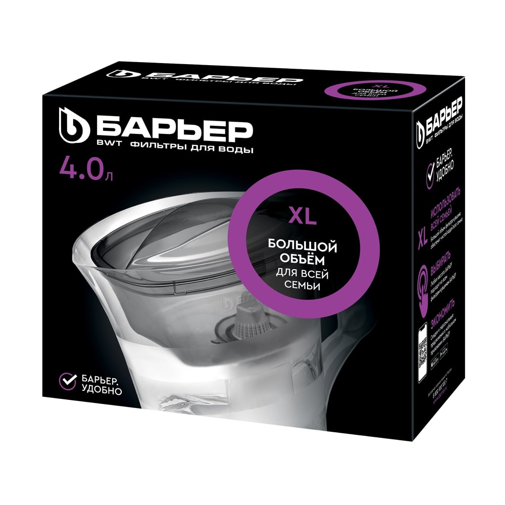 Кувшин декорирован матовыми горизонтальными полосами, которые подчеркивают форму кувшина. Кувшин изготовлен из высококачественного пластика BASF, допущенного для контакта с питьевой водой.