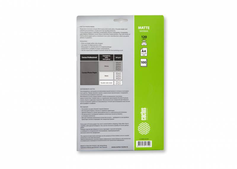 A4/120г/м2/100л./белый матовое для струйной печати