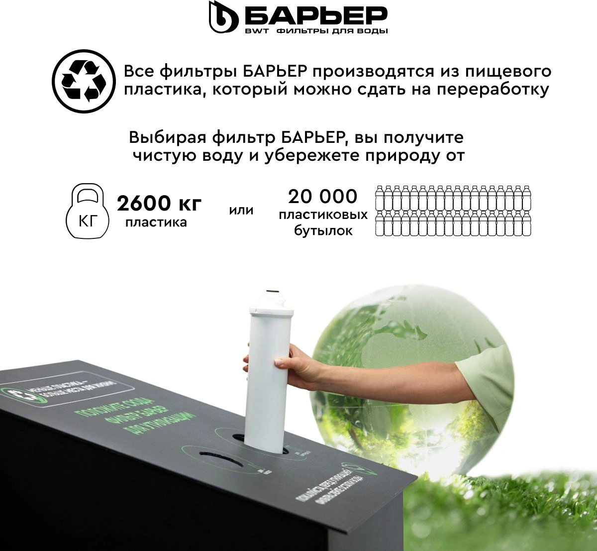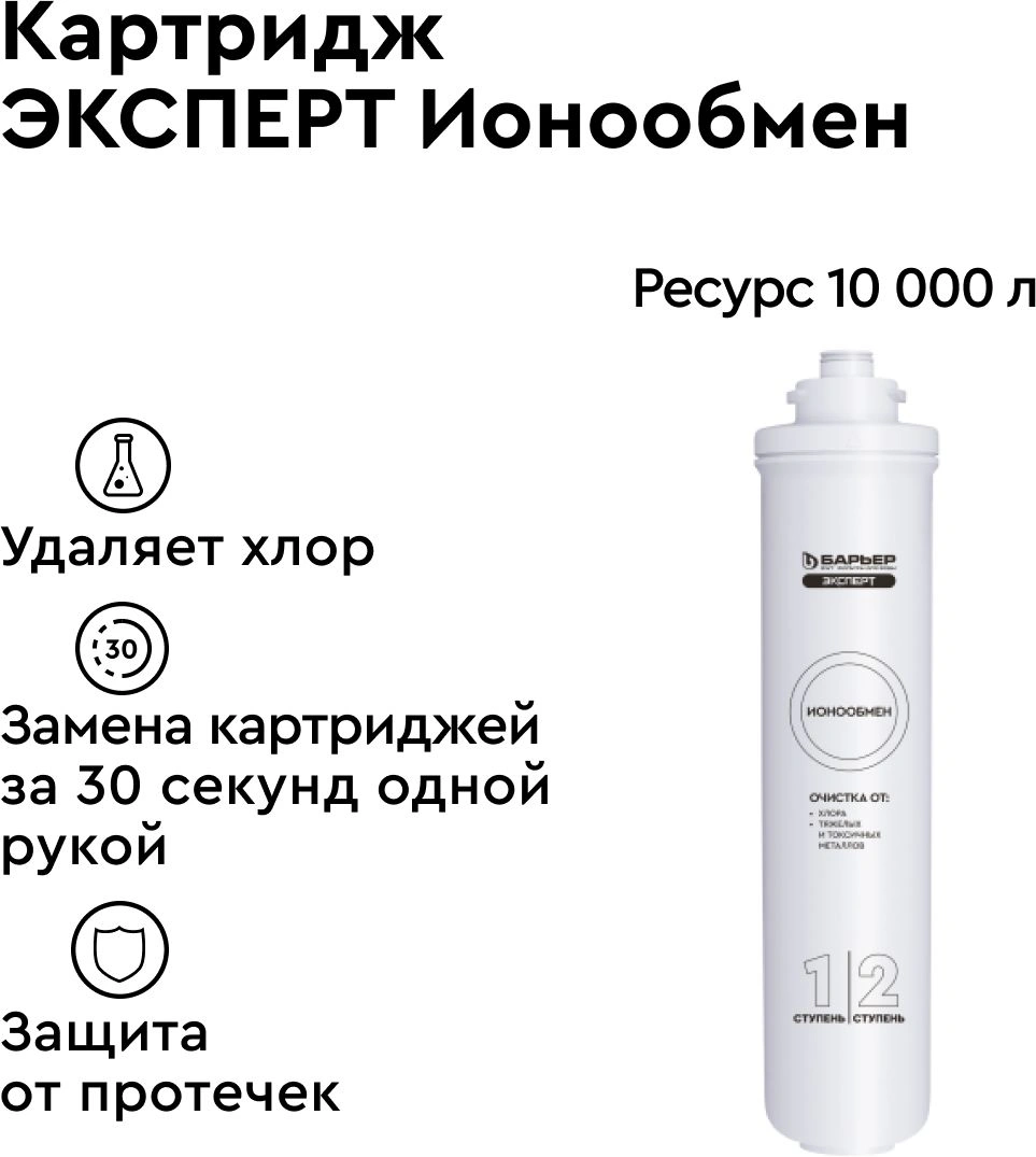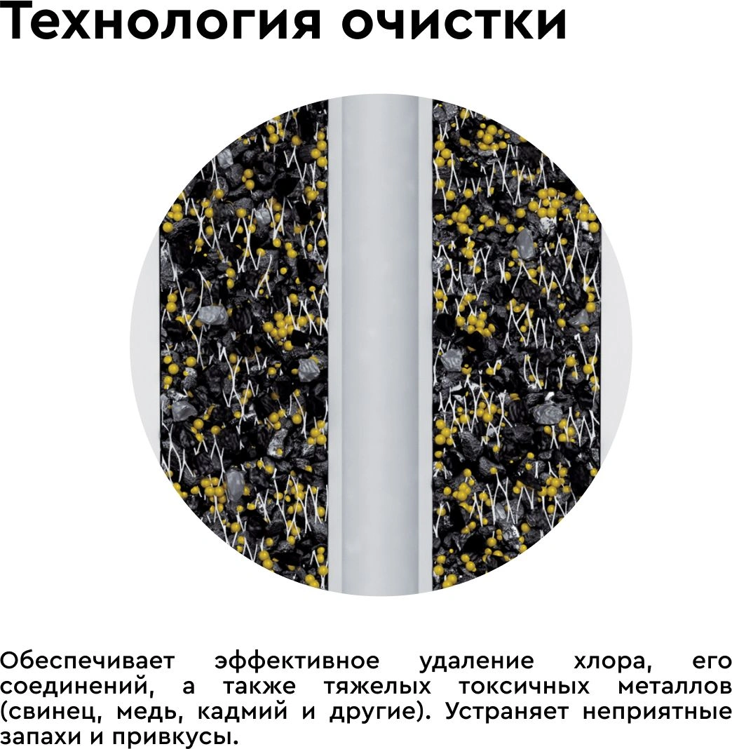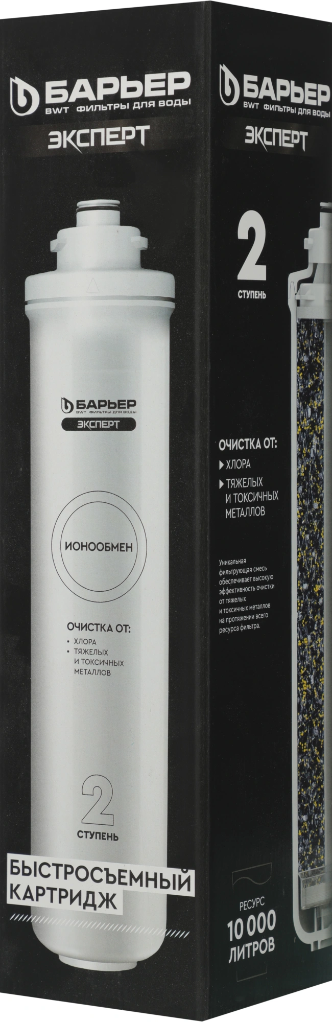 Высокая эффективность очистки от тяжелых металлов.Уникальная фильтрующая смесь, включающая в себя: 2 вида ионообменной смолы, ионообменное волокно и гранулированный активированный уголь содержащий серебро. Устанавливается во вторую ступень трехступенчатого проточного водоочистителя EXPERT Standart.