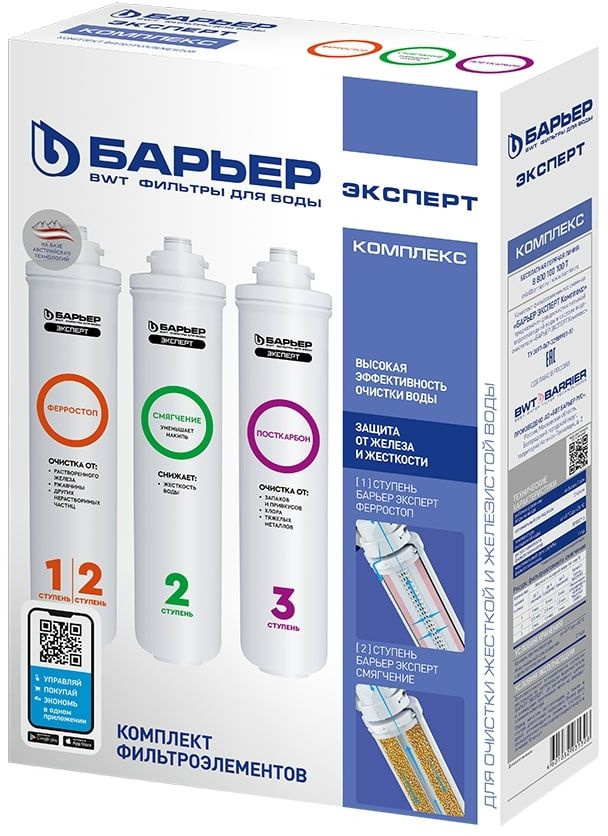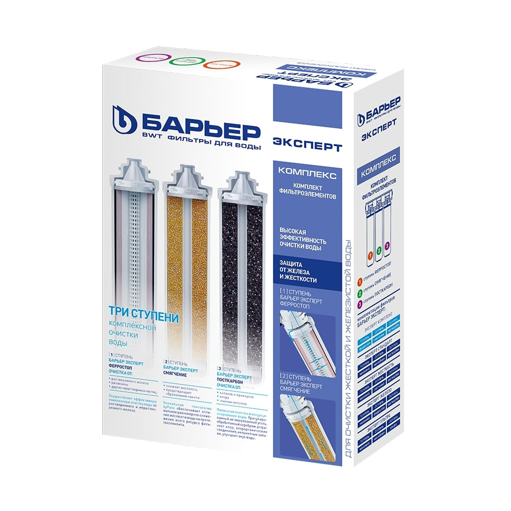 Фильтроэлемент "Ферростоп" очищает воду от растворенного железа, песка, ржавчины, окалины, других механических частиц. Фильтроэлемент "Смягчение" очищает воду от солей кальция, солей магния. Фильтроэлемент "Посткарбон" очищает воду от ионов тяжелых и токсичных металлов, неприятных запахов, привкусов