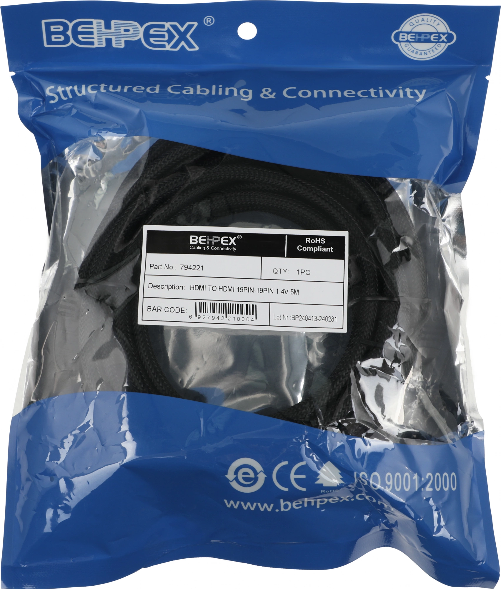 Кабель аудио HDMI (m)/HDMI (m) 5м. феррит.кольца позолоч.конт.