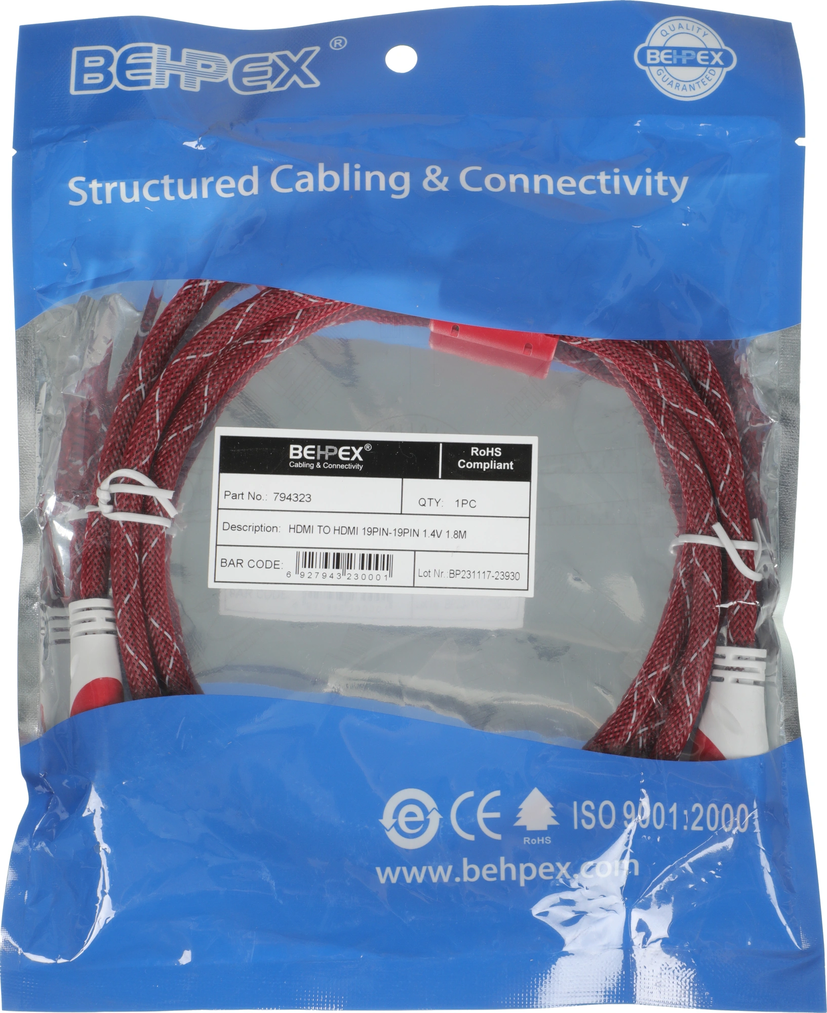 Кабель аудио-видео HDMI (m)/HDMI (m) 1.8м. феррит.кольца позолоч.конт. красный