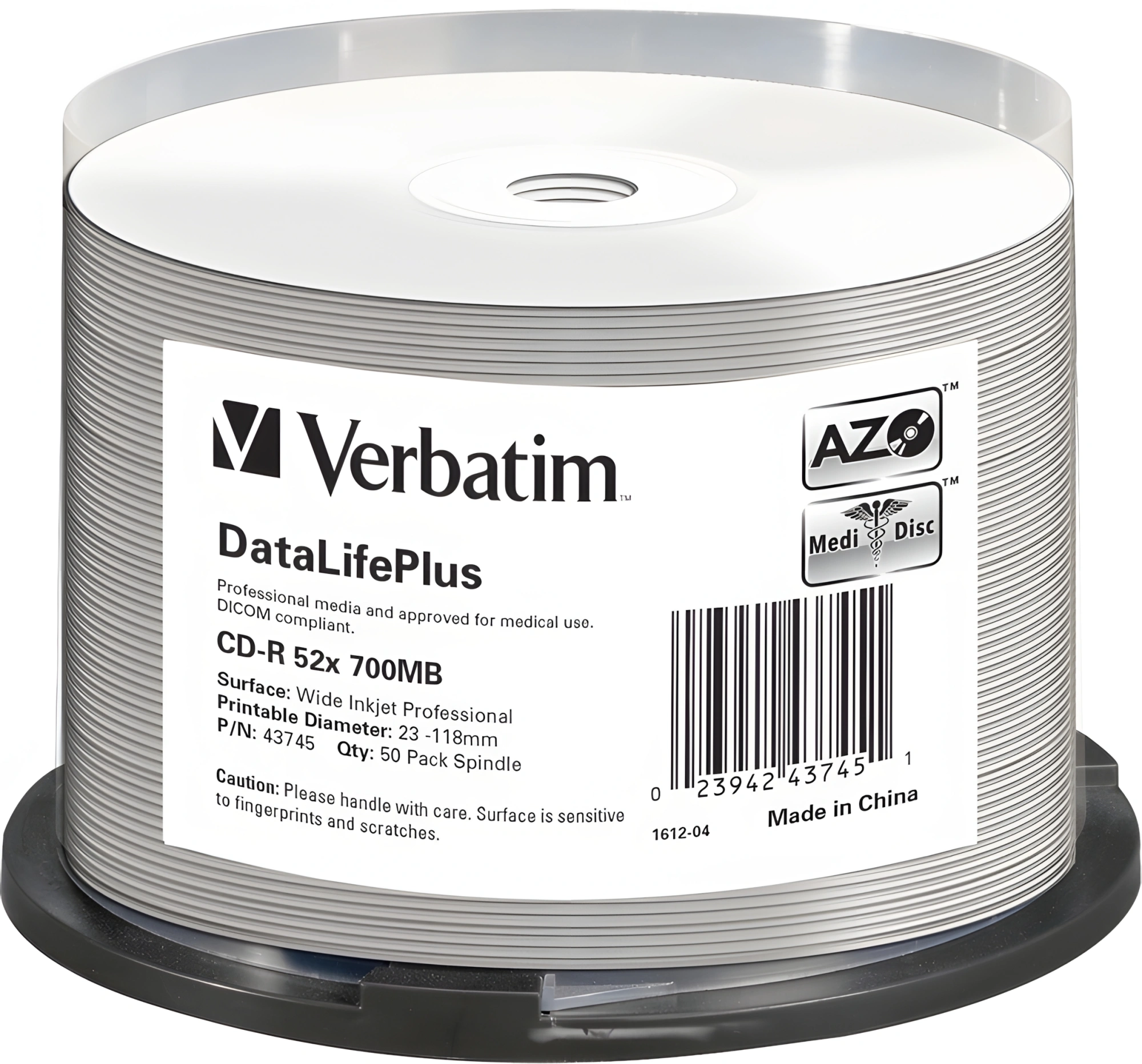 Диск CD-R Verbatim 700Mb 52x Cake Box (50шт) Printable (43756)