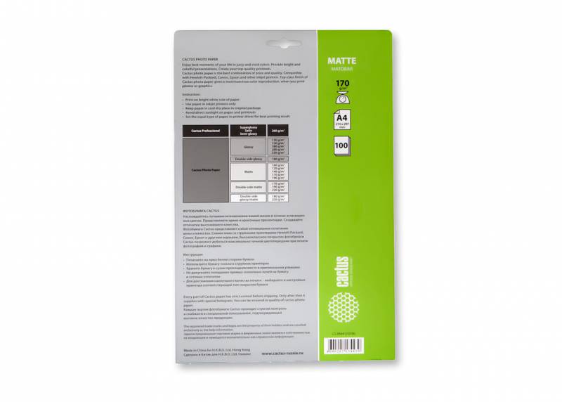 A4/170г/м2/100л./белый матовое для струйной печати