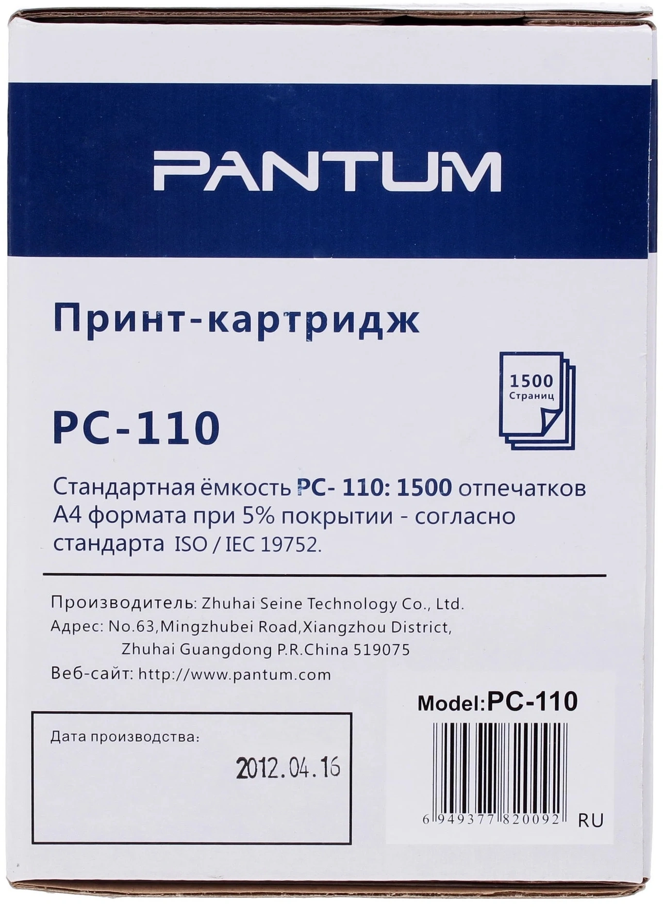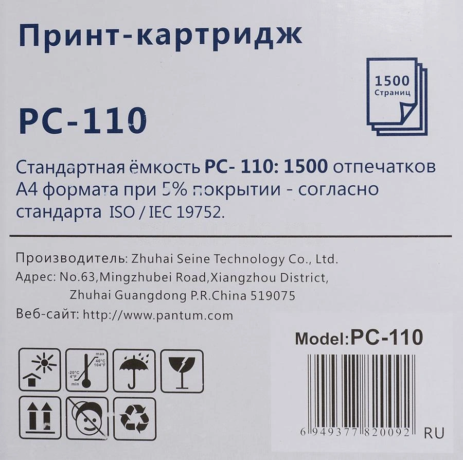 черный бар.в компл. (1500стр.) для Pantum P1000/20...