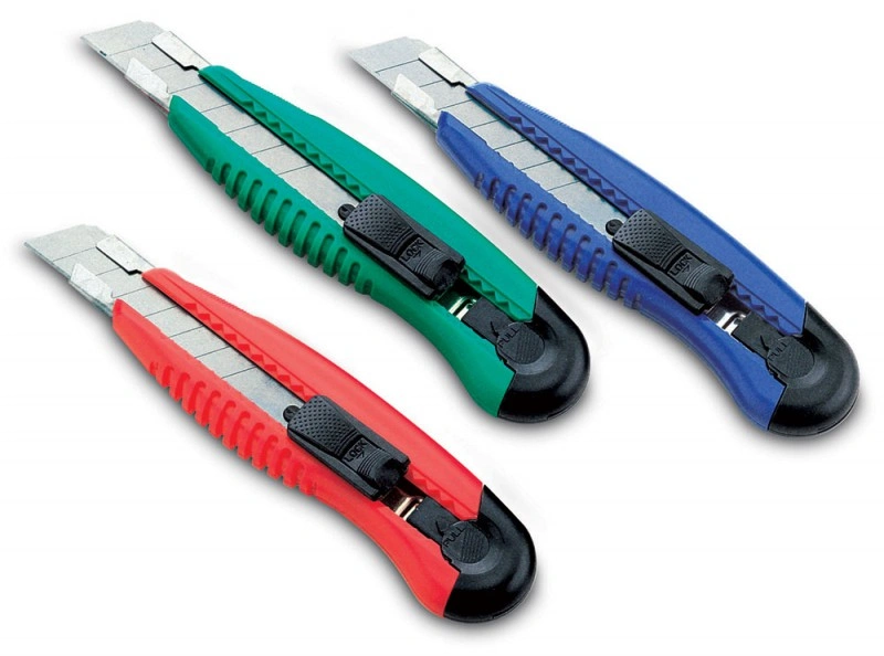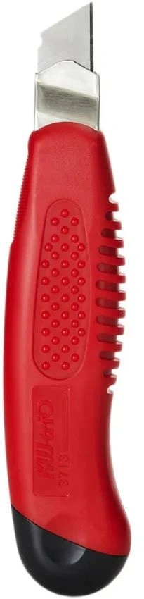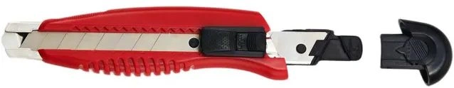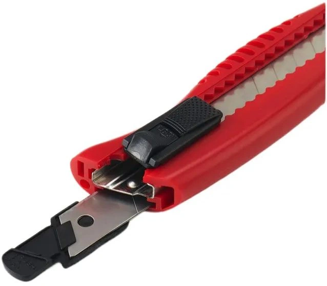 Ширина лезвия: 18 мм, на рукоятке прорезь для безопасного обламывания затупившейся части лезвия