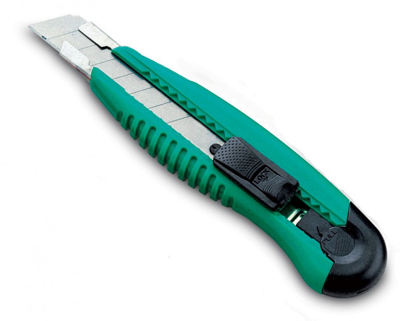Ширина лезвия: 18 мм, на рукоятке прорезь для безопасного обламывания затупившейся части лезвия