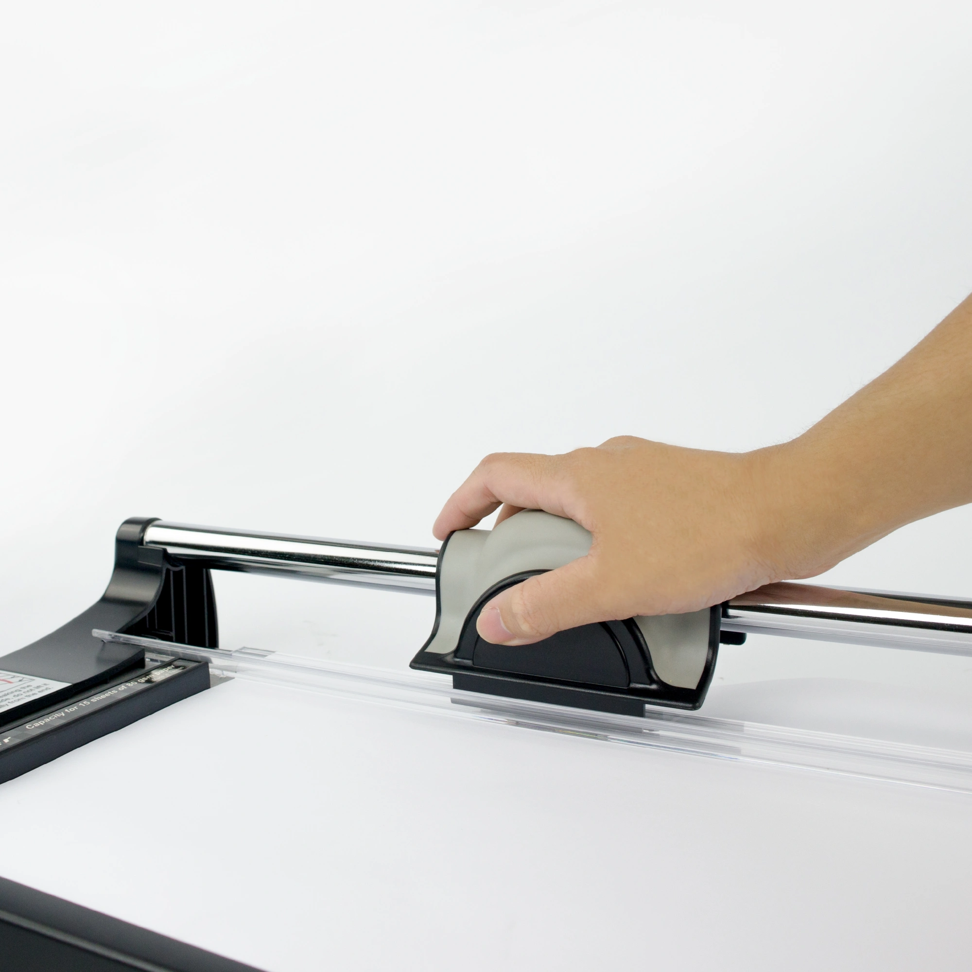 Роликовые резаки применяются для резки бумаги и картона при необходимости соблюдения высокой точности реза при высоте стопы до 1,5 мм. Дисковый нож, заключенный в пластиковый корпус, безопасен для пользователя.