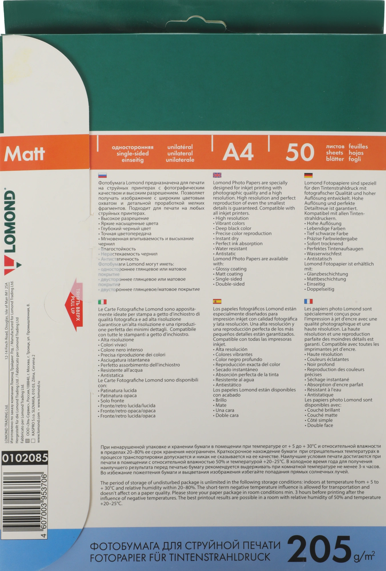 Фотобумага Lomond 0102085 A4/205г/м2/50л./белый матовое для струйной печати