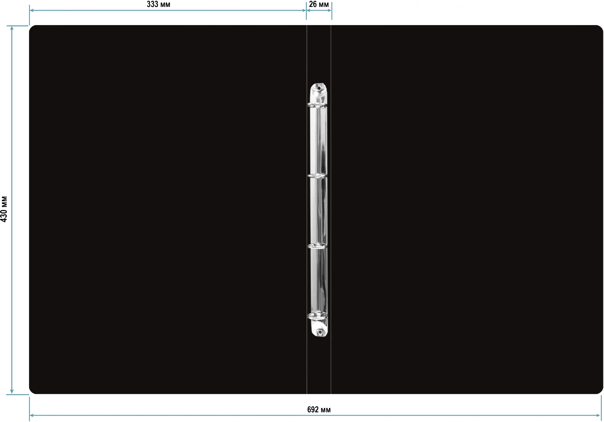 Папка на 4-х кольцах Бюрократ -0827VA3BLCK A3 верт. пластик 0.8мм кор.27мм черный