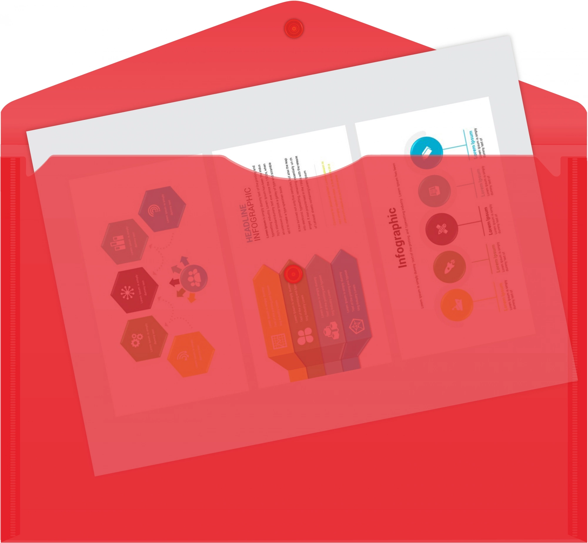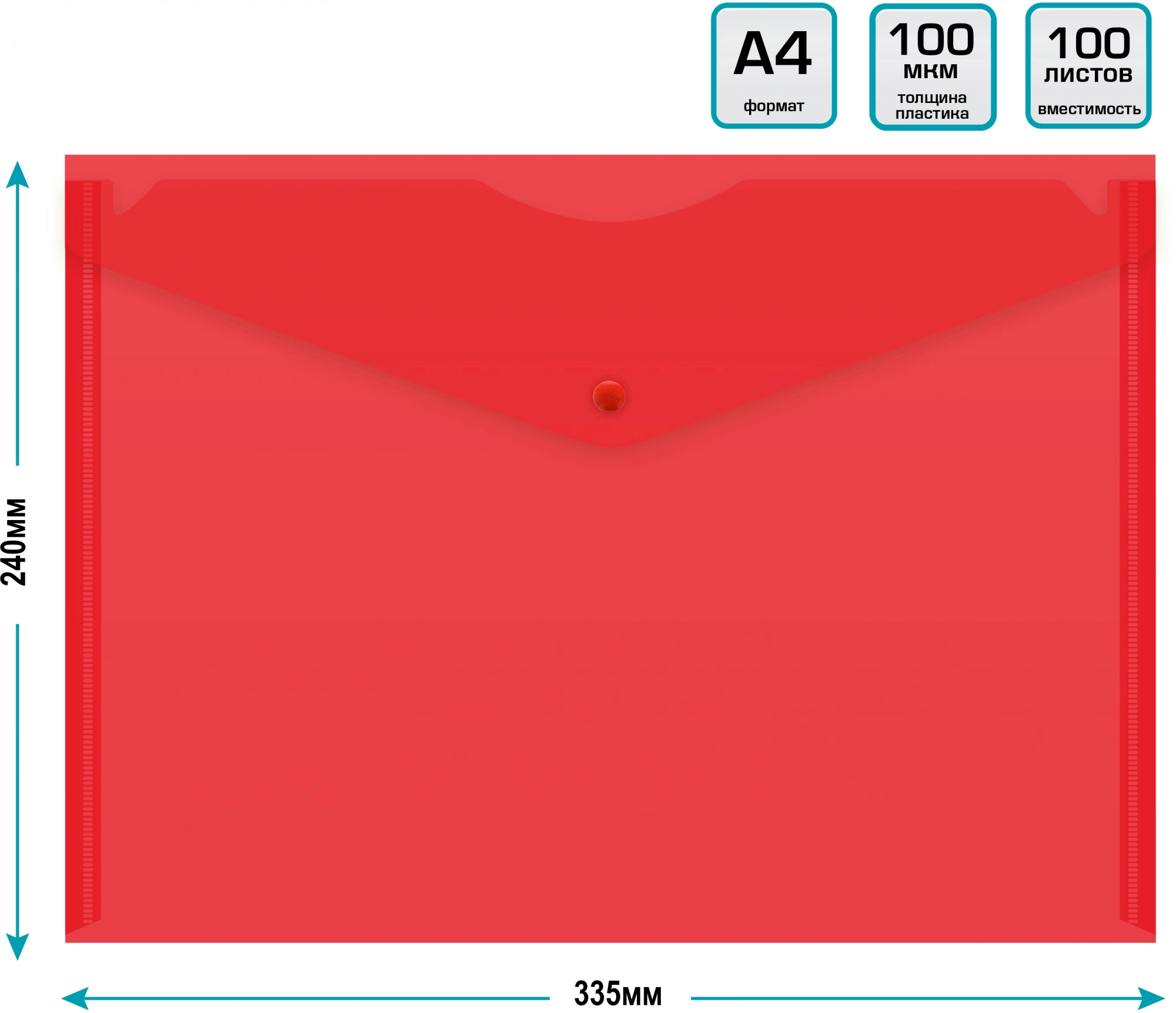 Конверт с кнопкой (однотонный) толщина 0,1мм, ф.А4, красный, Россия