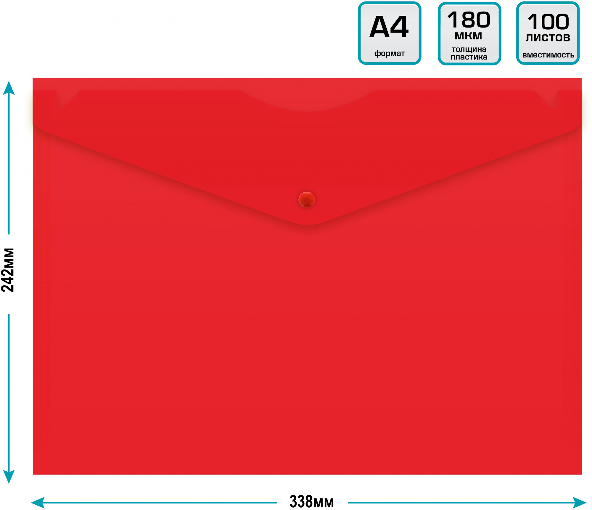 Конверт с кнопкой непрозр. глянцевый толщина 0,18, ф.А4, красный, Россия