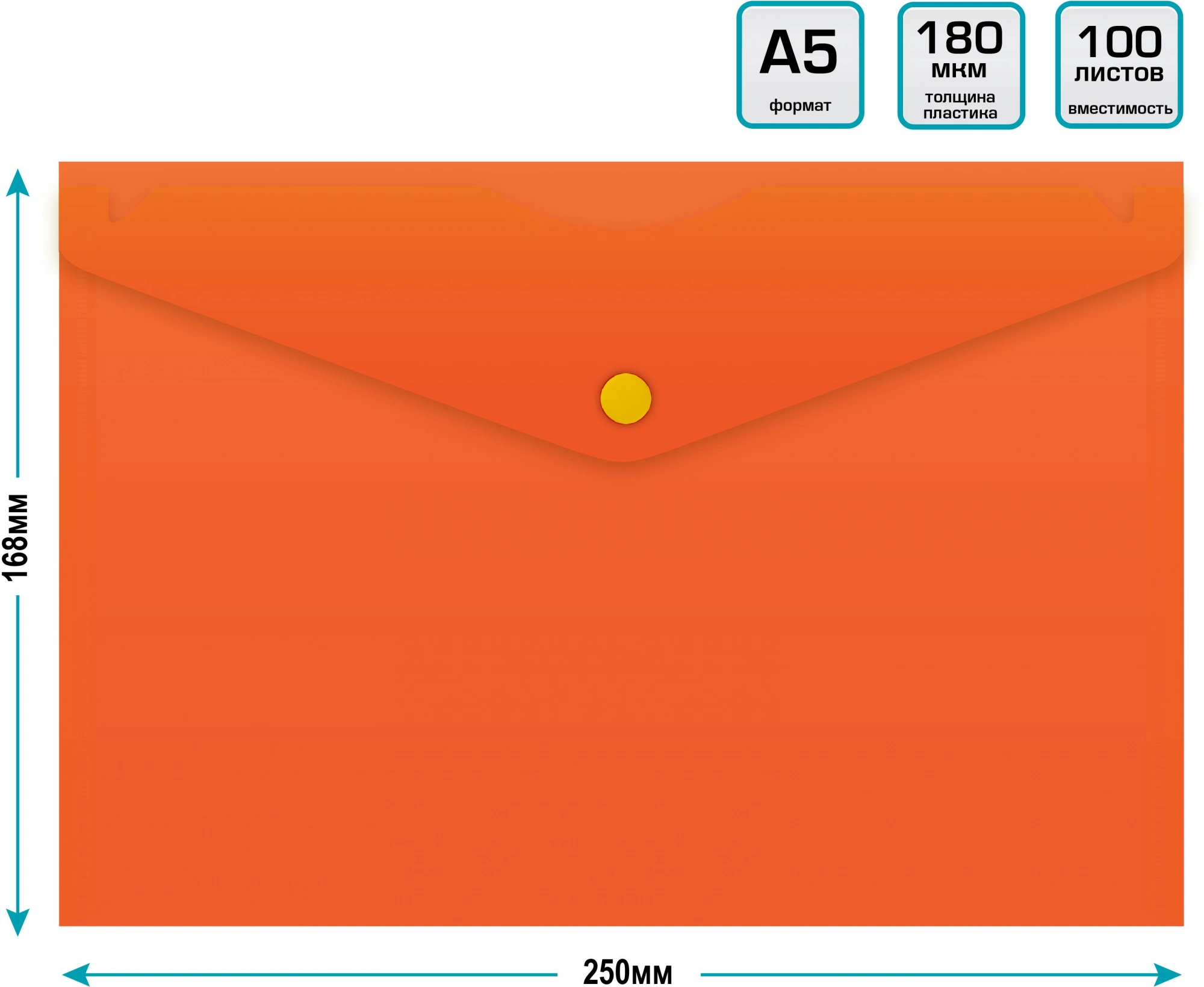 Конверт на кнопке Бюрократ -PK804A5NOR A5 непрозрачный пластик 0.18мм оранжевый