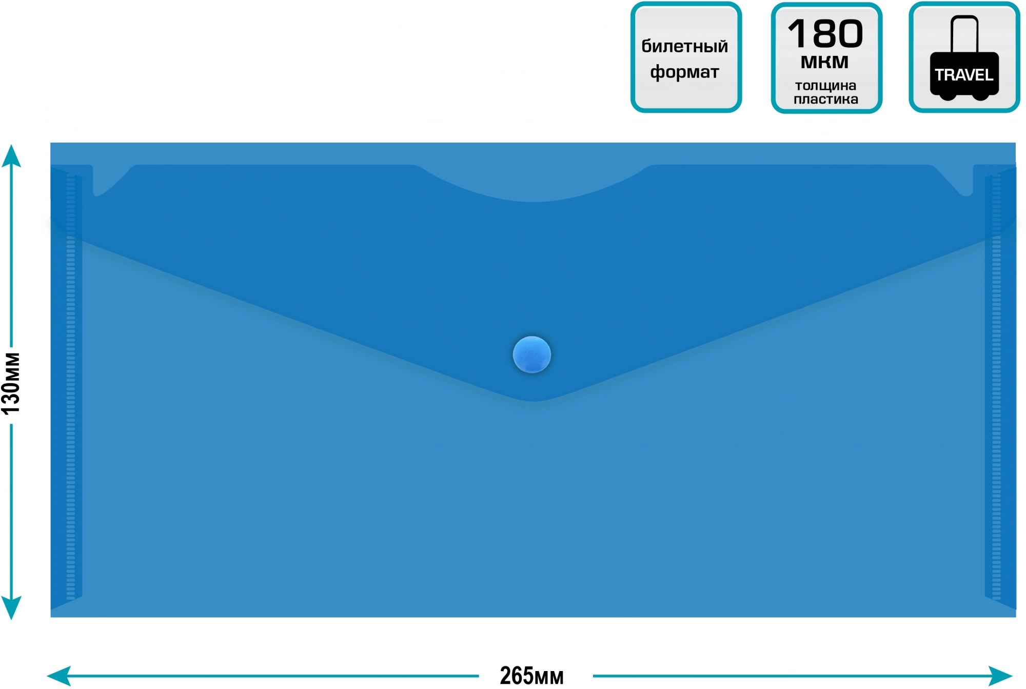 Конверт с кнопкой(однотонный),250х130мм,0.18мм, синий,Россия