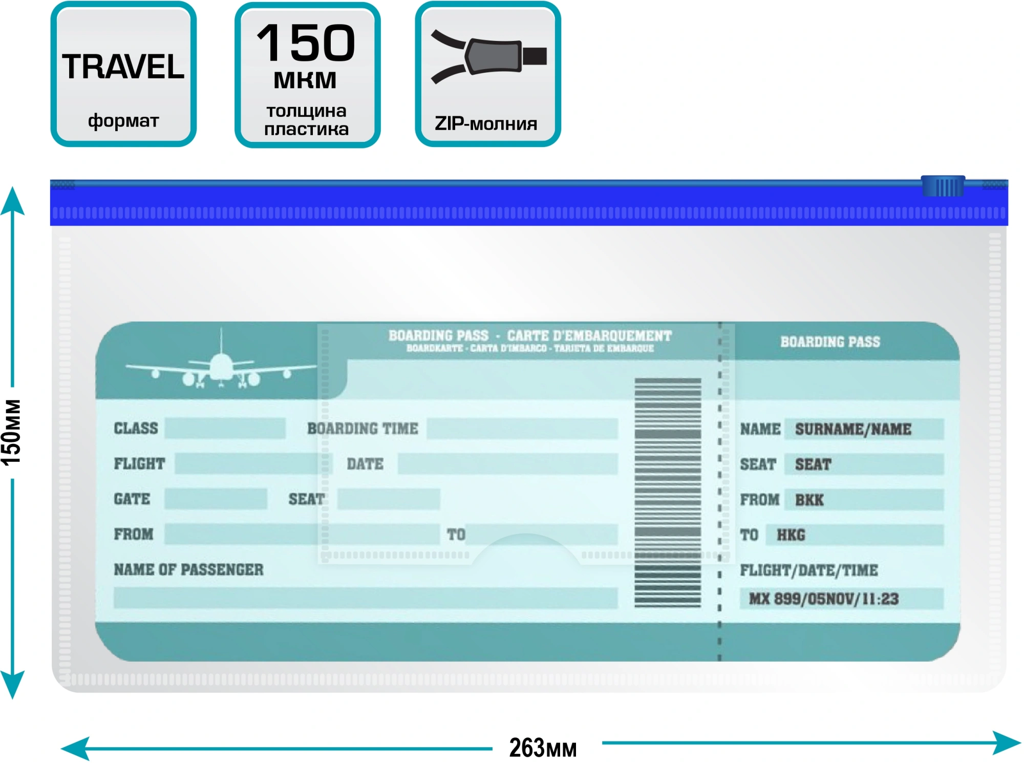 Толщина пластика: 0,15 мм