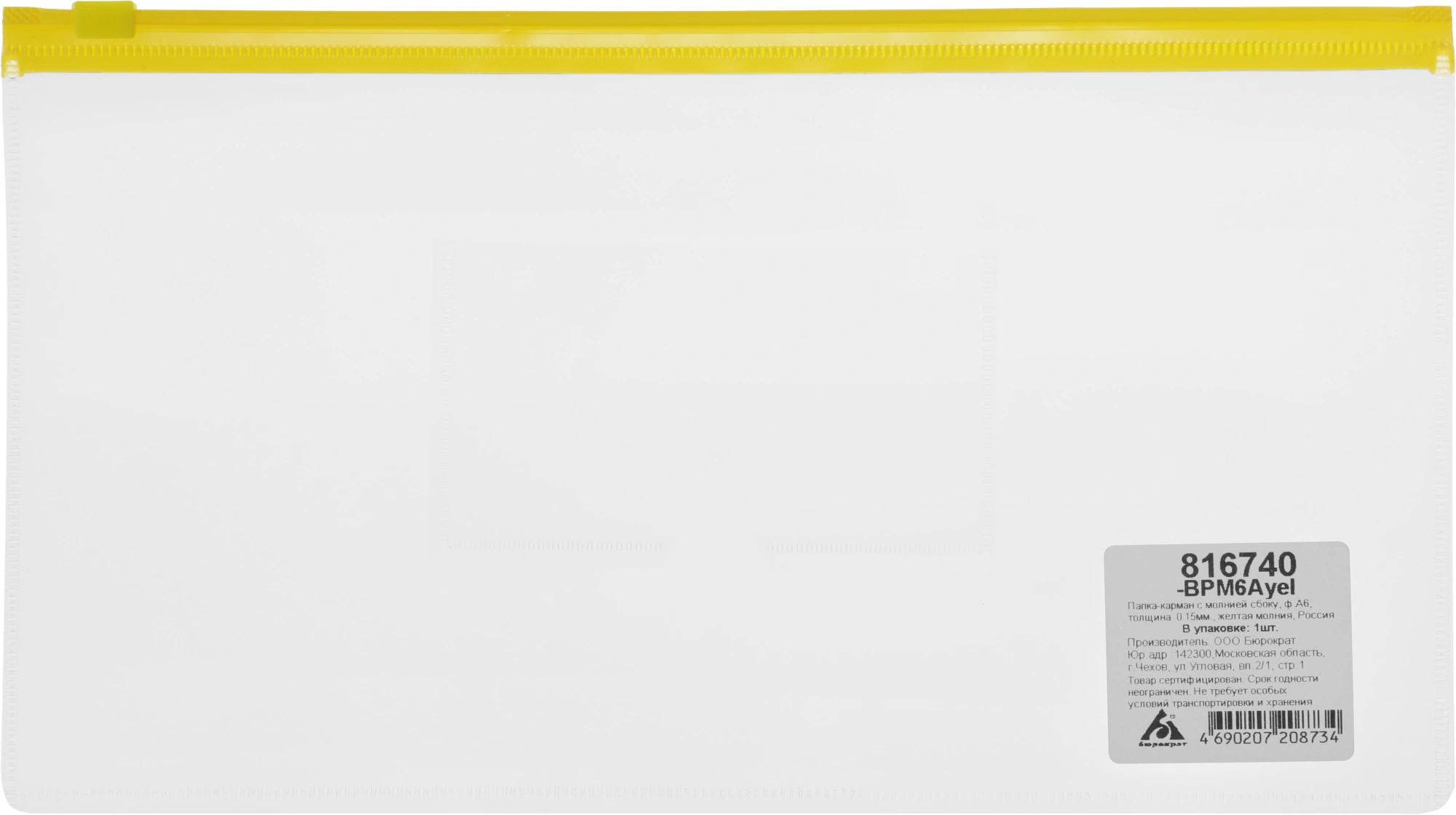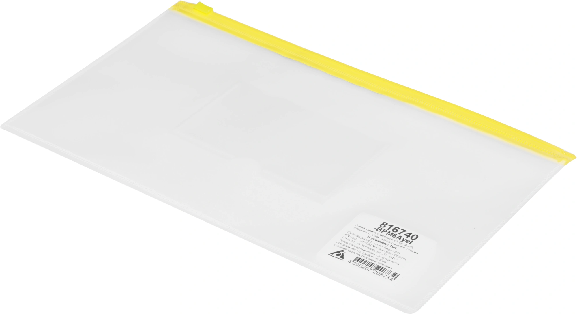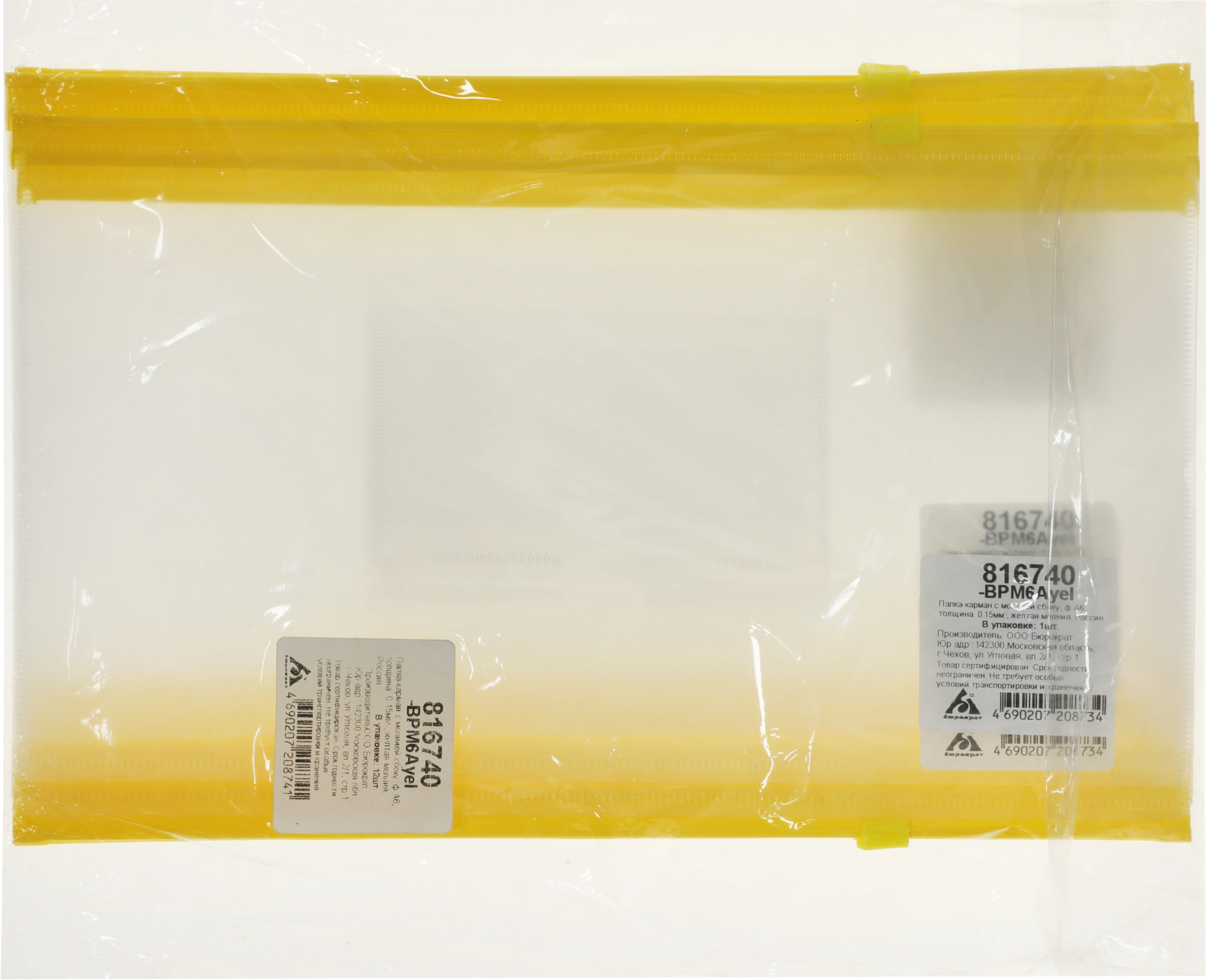 Папка на молнии ZIP Бюрократ -BPM6AYEL полипропилен 0.15мм карм.для визит. цвет молнии желтый Travel формат