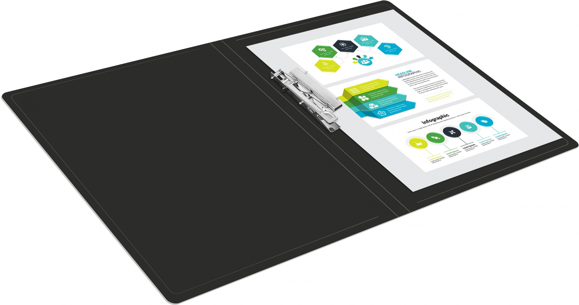 Папка с металлическим зажимом, ф.А4, пластик 0.50мм, торц. наклейка, черная, Россия