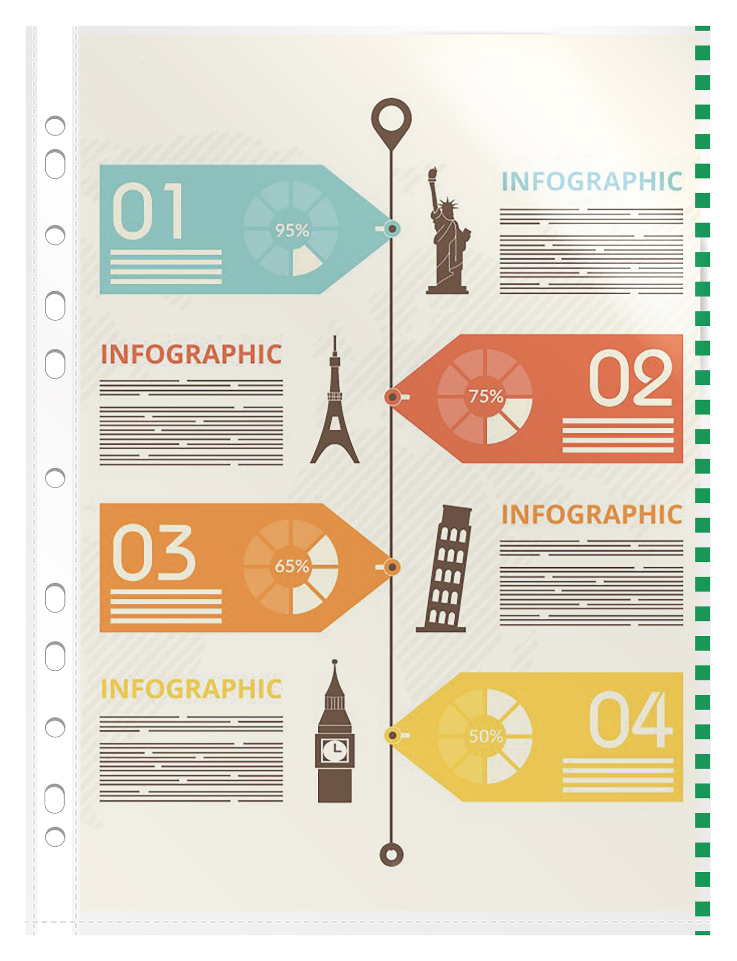 Цветной зеленый край позволяет легко систематизировать документы по темам.