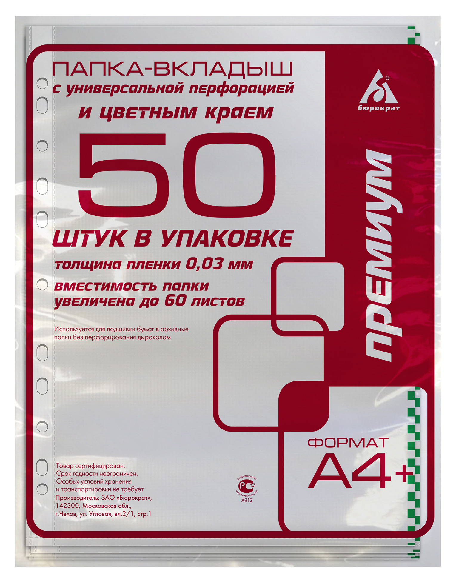 Папки-вкладыши Бюрократ Премиум предназначены для хранения документов формата А4 в любых папках и защиты от внешних воздействий.