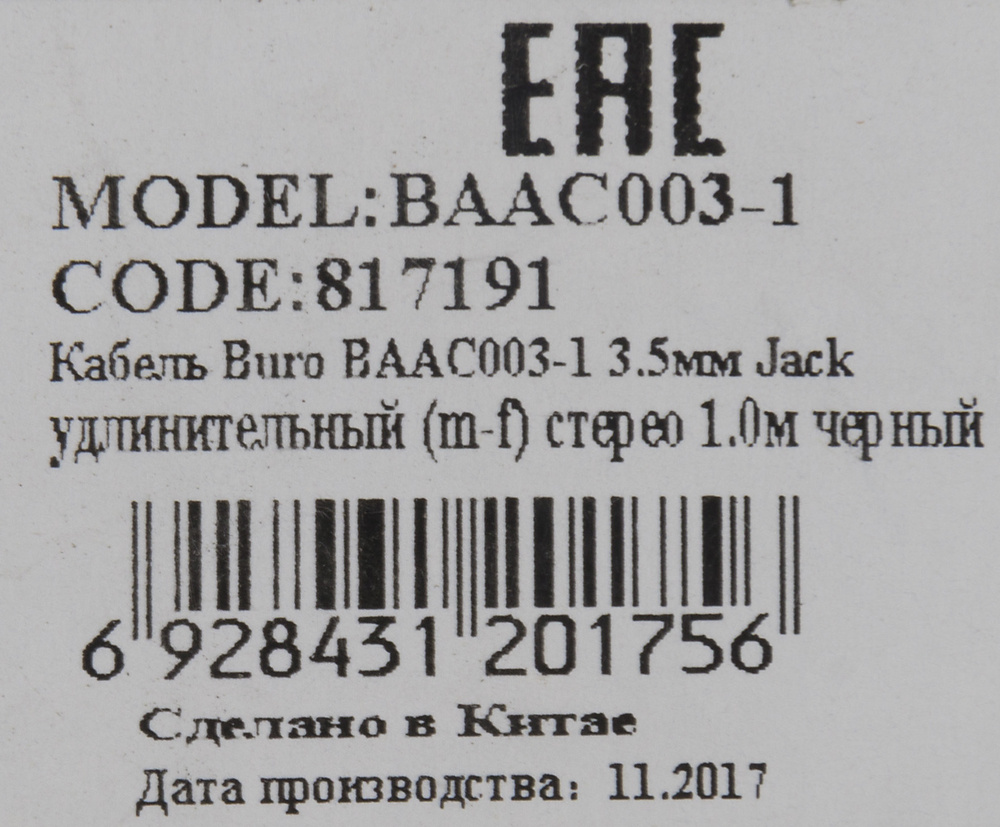 Jack 3.5 (m)/Jack 3.5 (f) 1м. черный