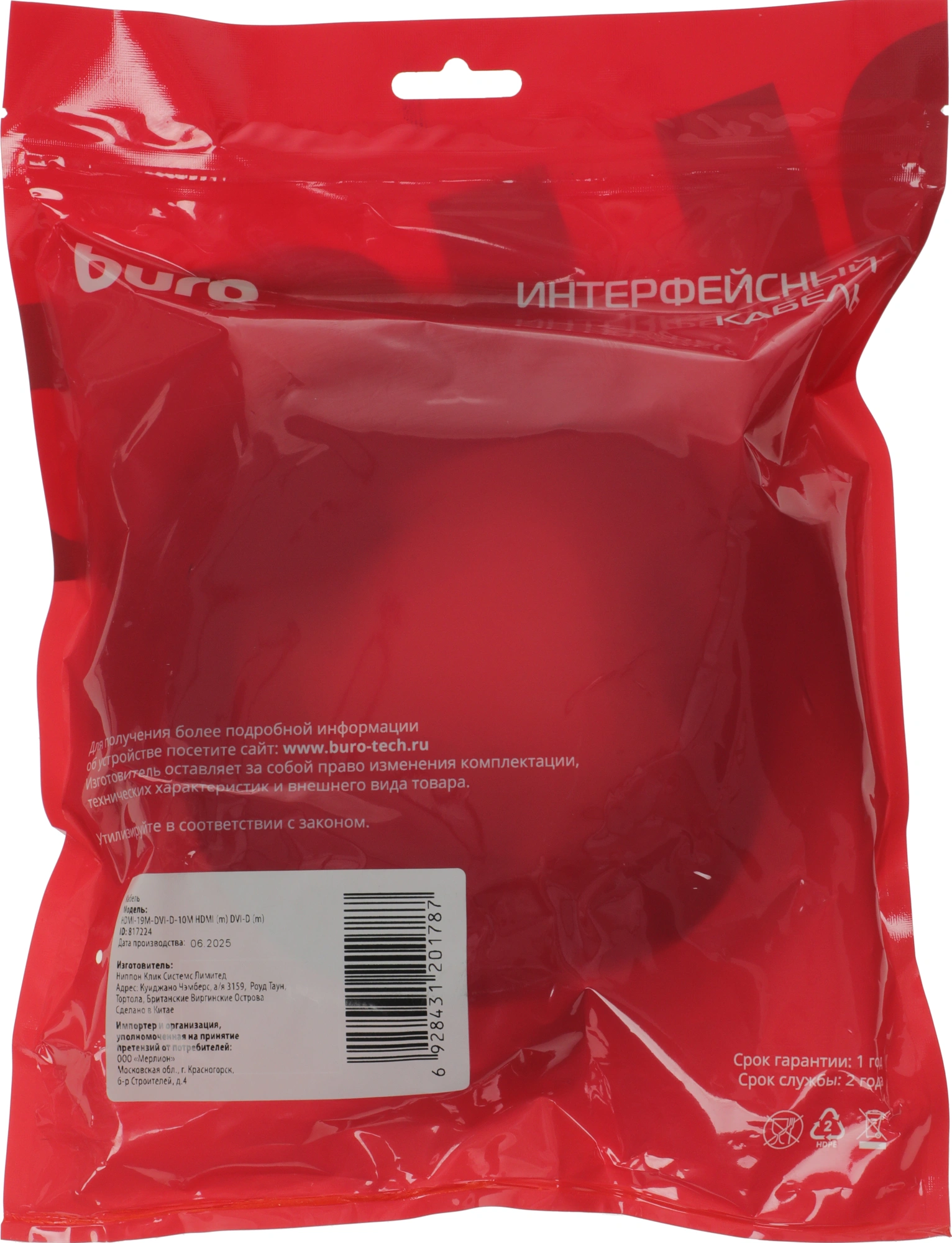 Кабель Buro HDMI (m) DVI-D (m) 10м (HDMI-19M-DVI-D-10M) феррит.кольца черный
