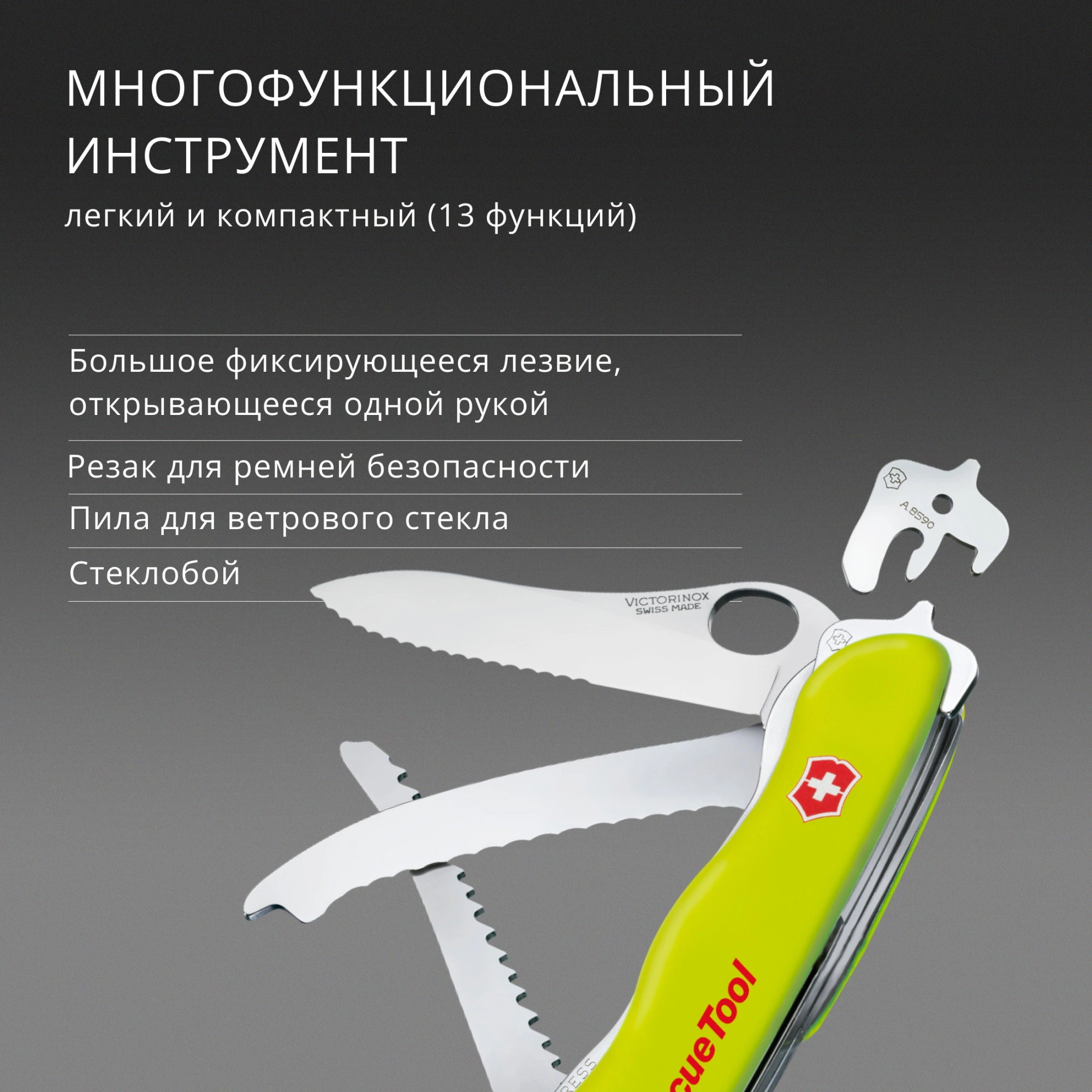 Нож для чрезвычайных ситуаций RescueTool One Hand - это многофункциональный инструмент с набором из 13 функций:
